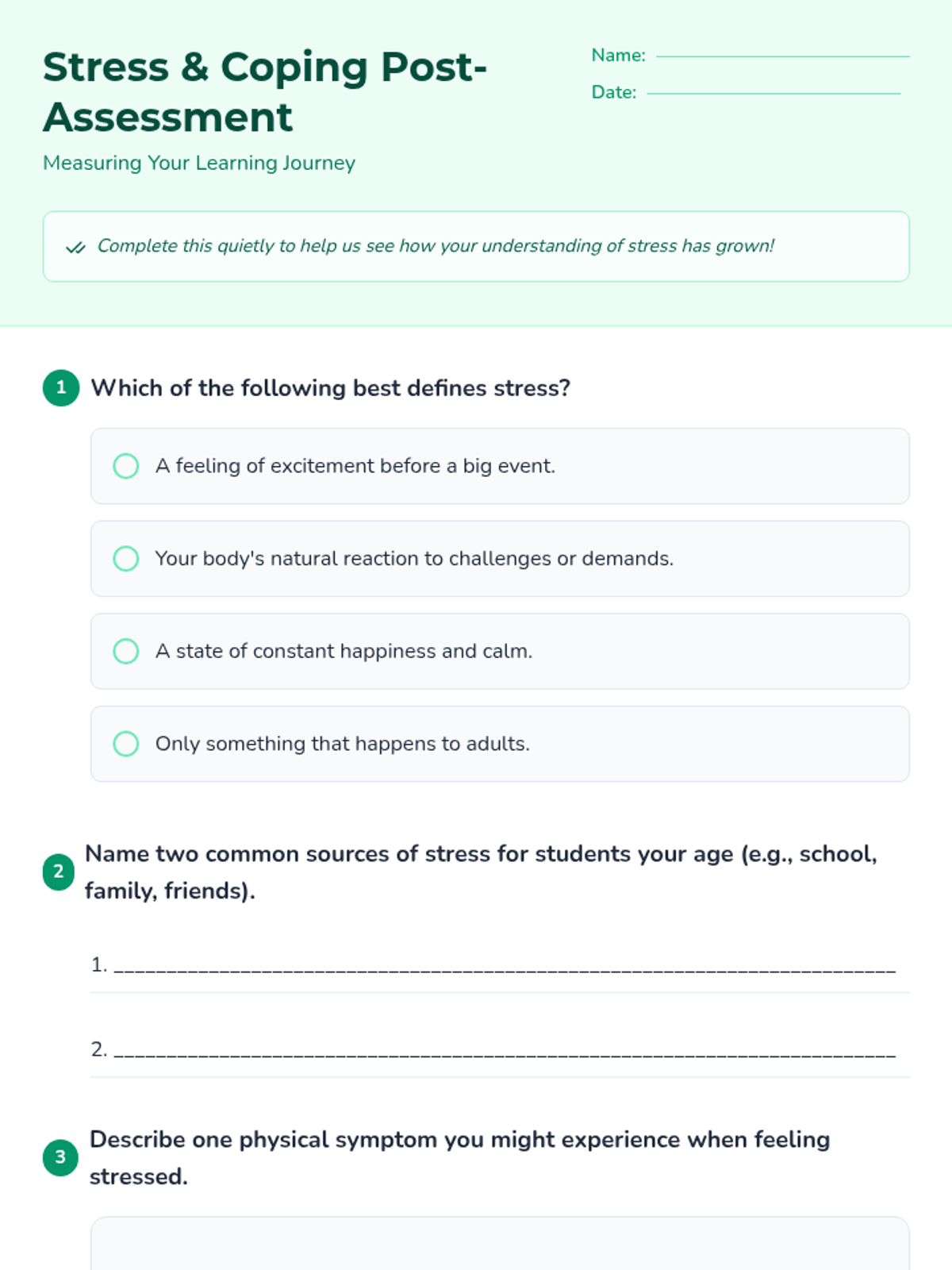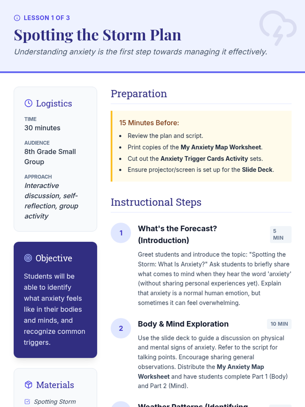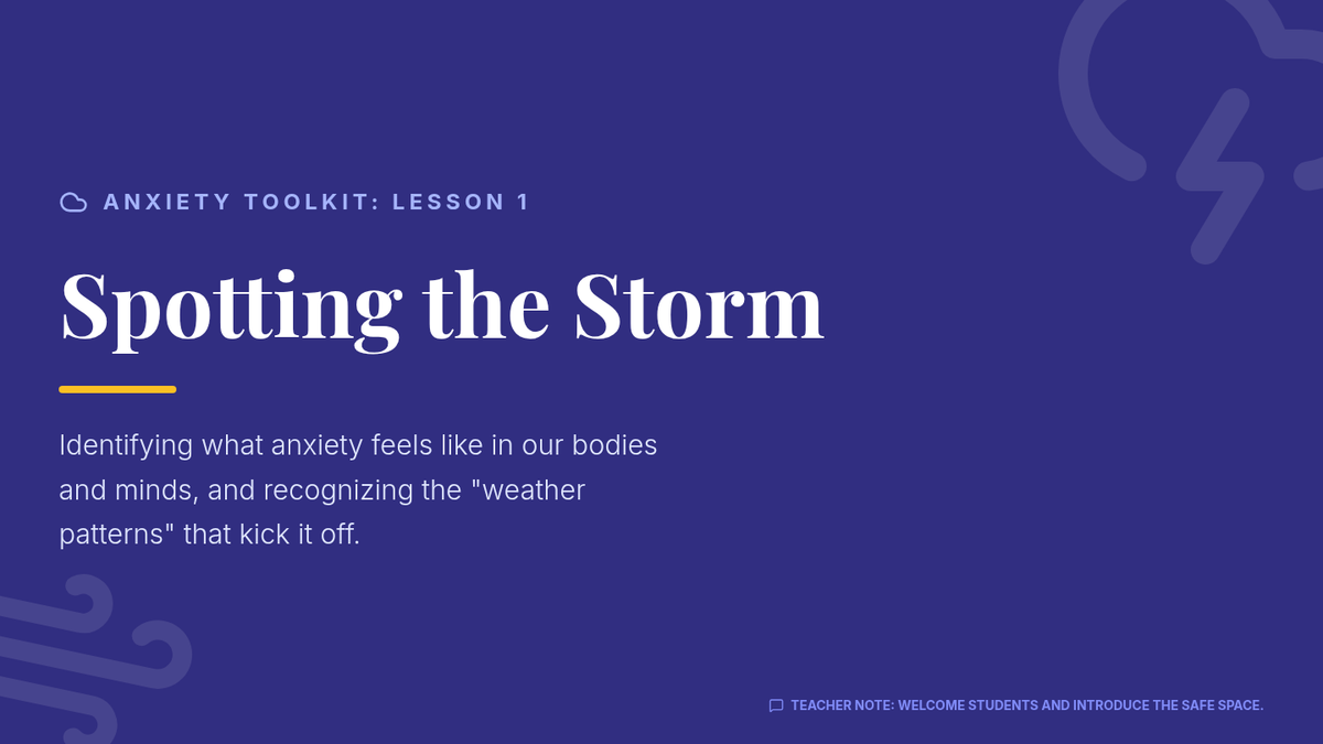 A three-part small group series for 8th graders designed to help them identify anxiety signs, learn immediate coping tools, and build a personalized 'Calm Kit' for long-term emotional resilience.