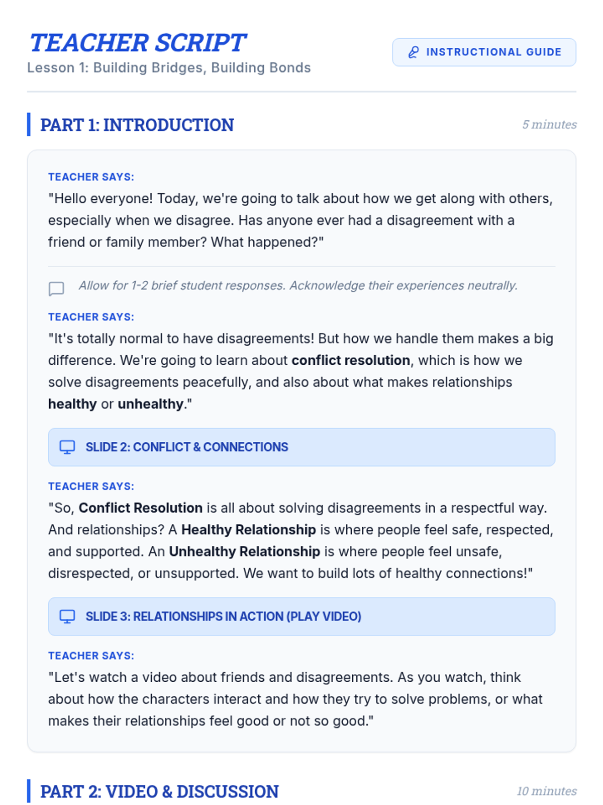 A series of lessons and resources focused on social-emotional learning, specifically targeting interpersonal skills and relationship building for students.