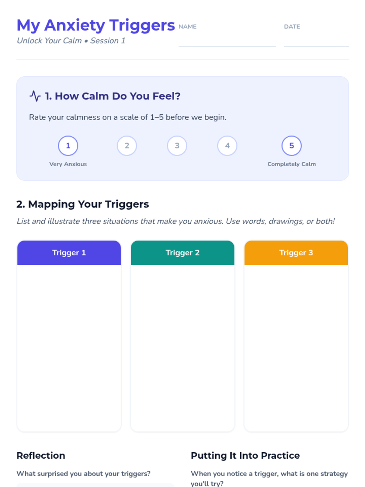 A 6-session counseling group designed to help students identify triggers, understand physical symptoms of anxiety, and build a personalized toolkit of coping strategies through a 'Calm Explorer' theme.