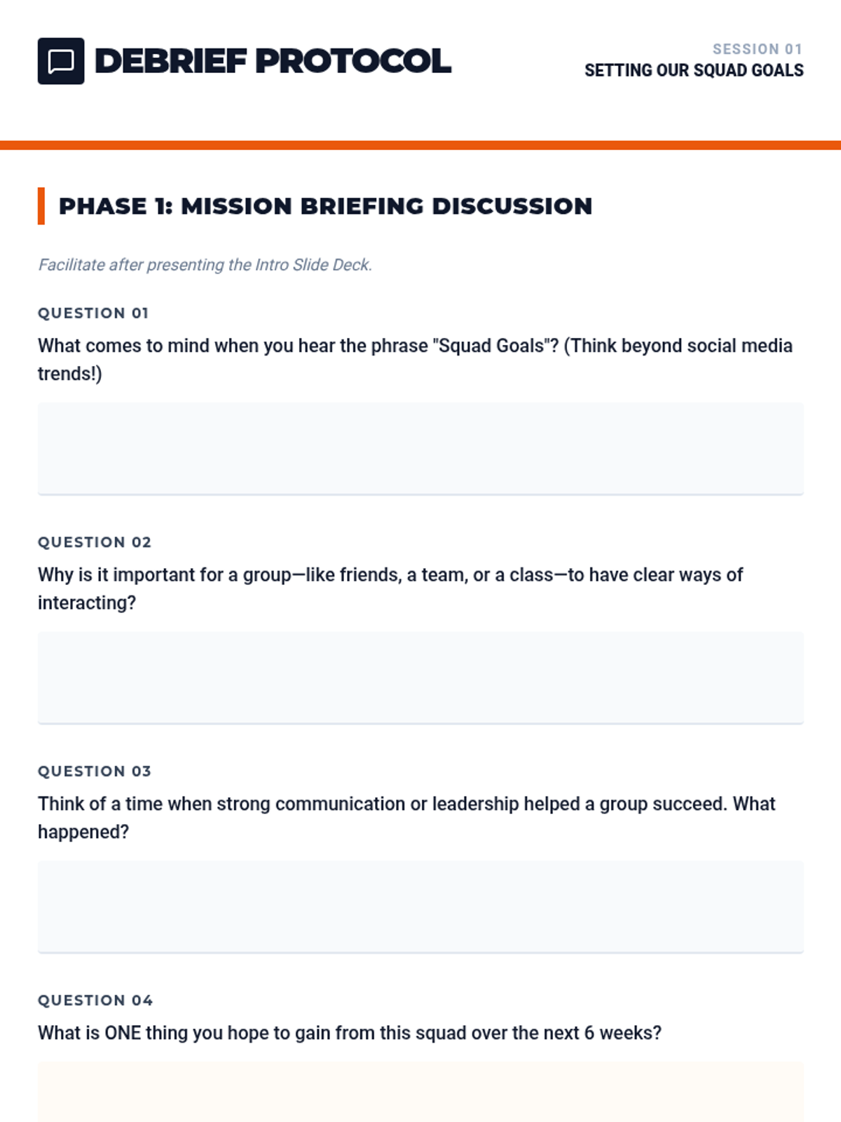 A 6-week social-emotional learning program for 8th-grade boys focused on building a strong school community to drive individual and collective success. Through interactive games, group discussions, and reflective activities, students learn to contribute positively and navigate challenges together.