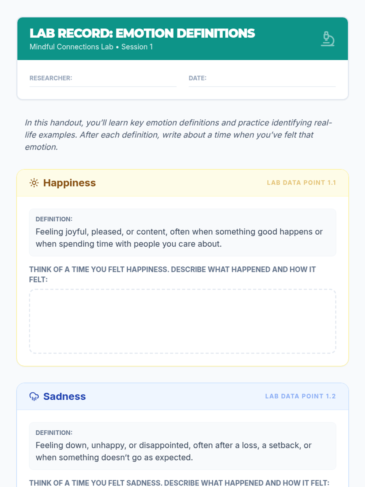 A 4-week group counseling curriculum designed to build essential social and emotional competencies through a 'lab-based' experimental approach. Students explore executive functioning, emotional regulation, friendship dynamics, and conflict resolution using interactive tools and reflective practices.