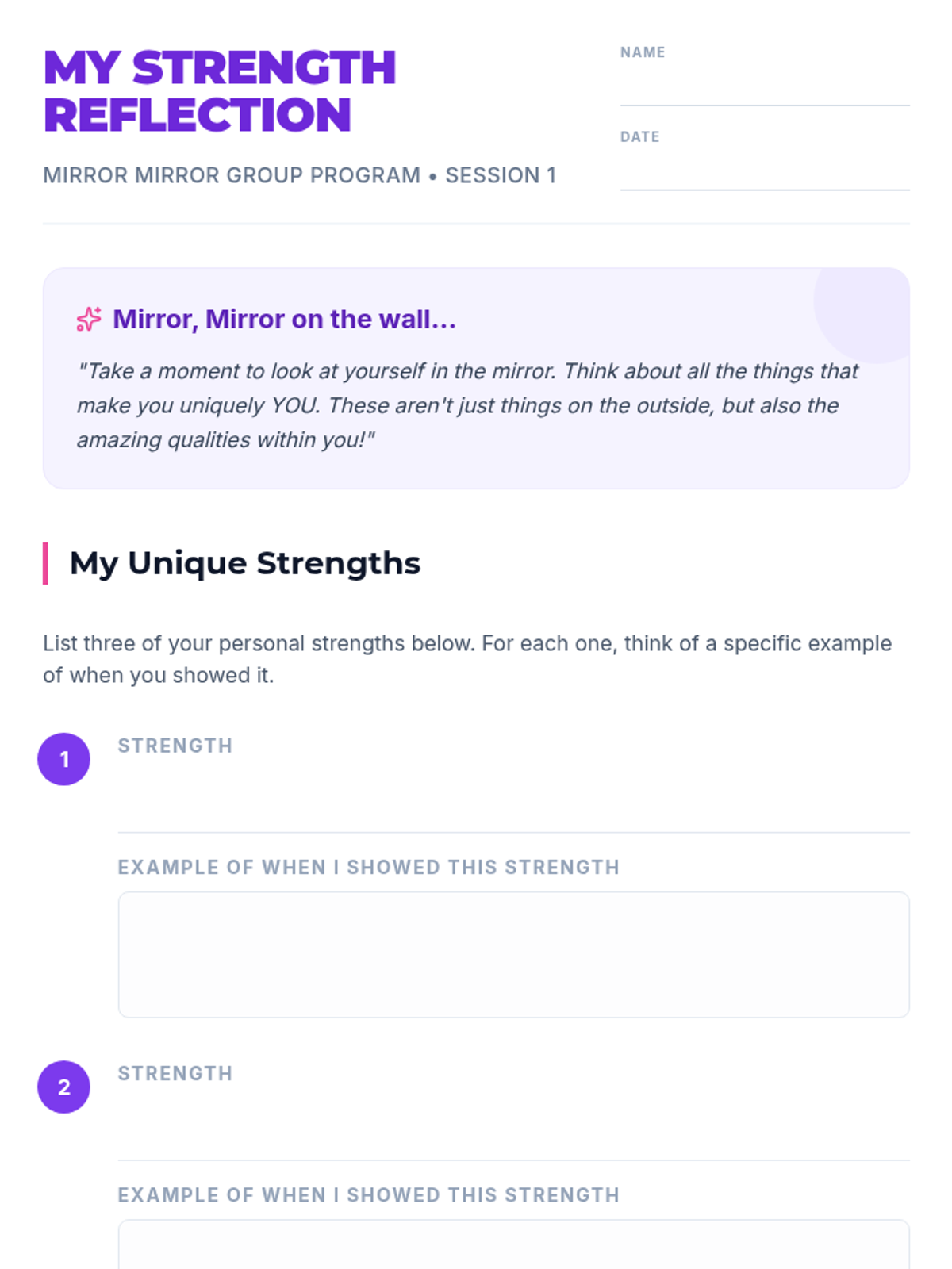 A comprehensive six-week empowerment program for middle school girls focused on building self-confidence, identifying healthy friendship patterns, navigating social hierarchies, and developing self-advocacy skills.