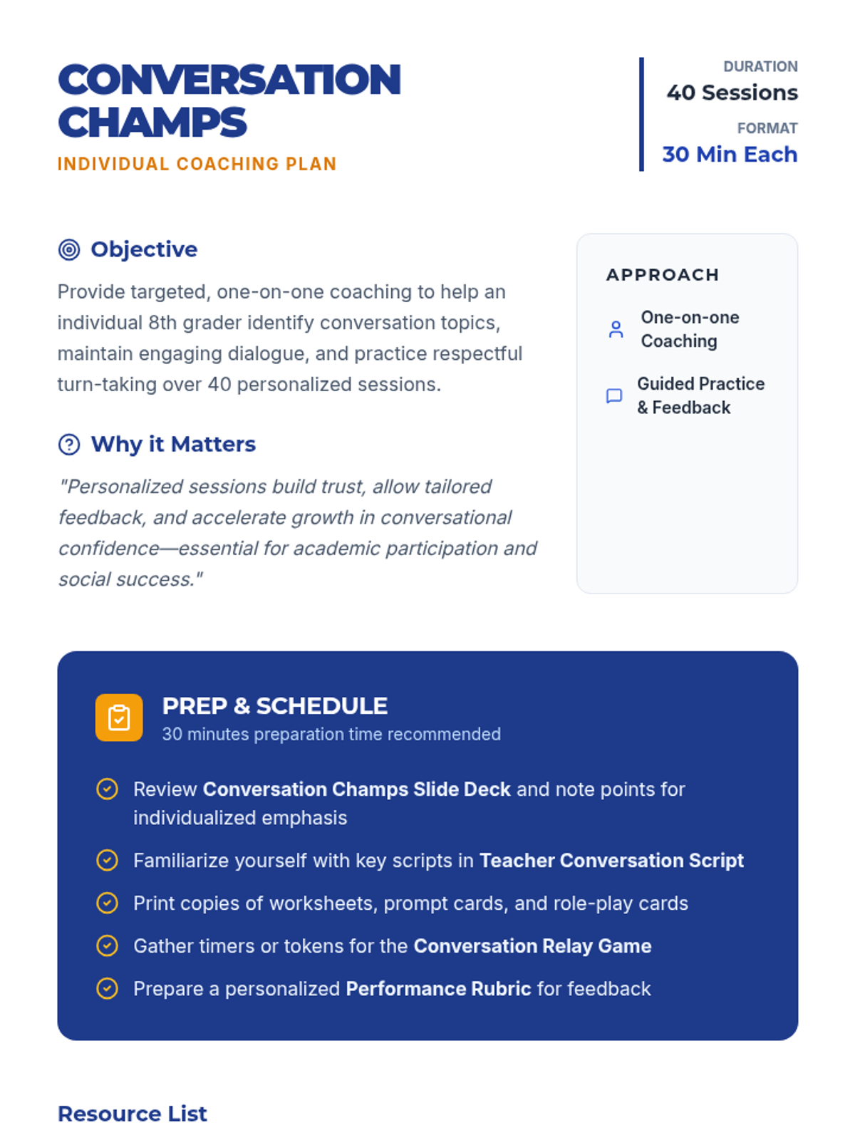 A comprehensive 20-week program designed for 8th graders to master self-advocacy. The sequence moves from internal self-awareness to external communication, conflict resolution, and academic independence, focusing on identifying barriers and implementing solutions.