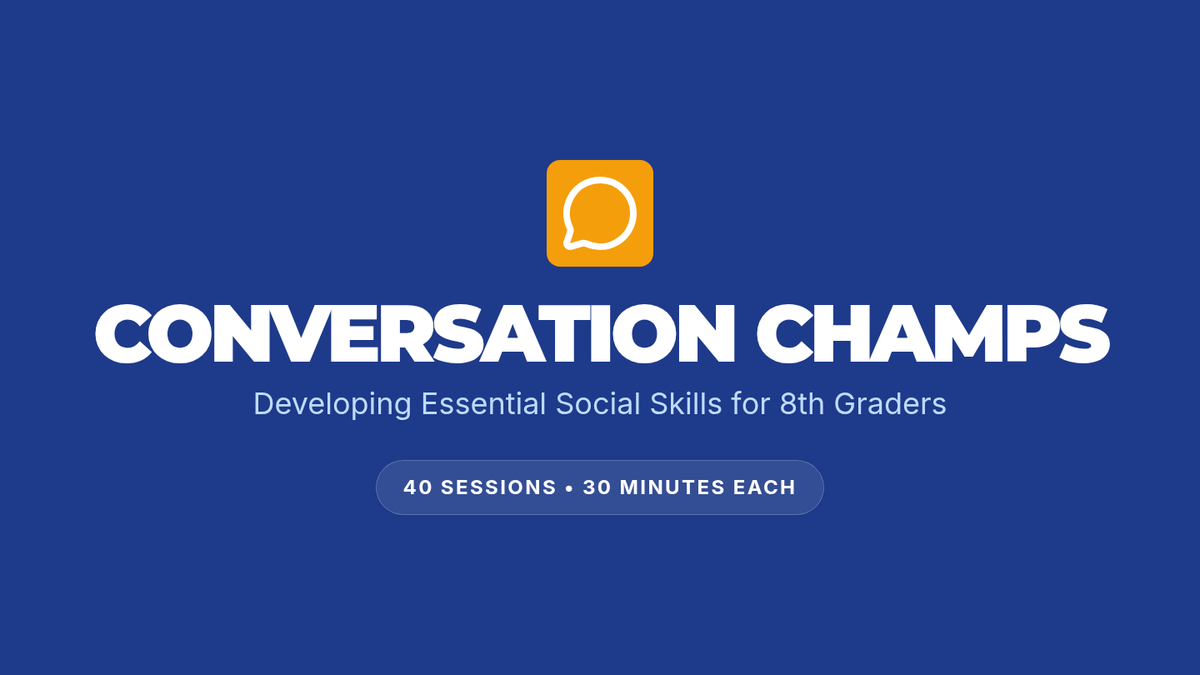 An intensive 8-week social skills program for 8th graders focusing on conversation mechanics, empathy, and real-world application through 40 sessions.