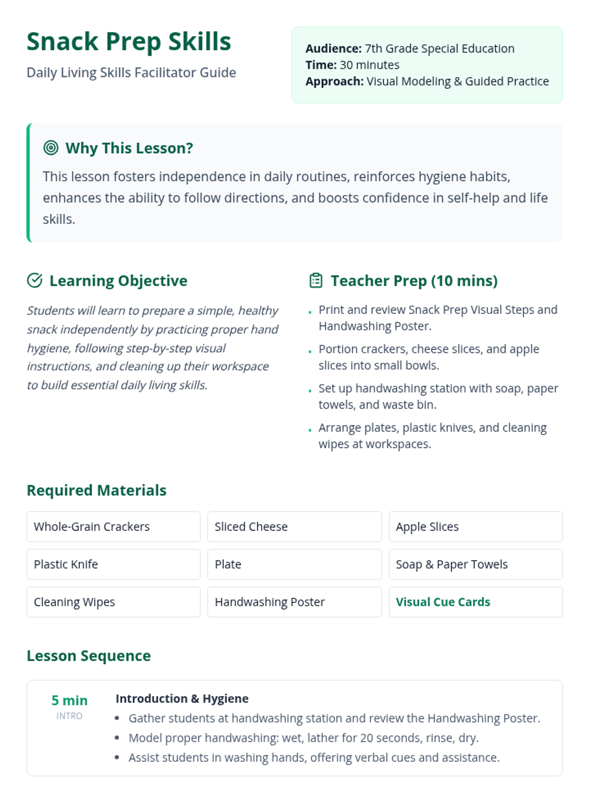 A comprehensive independent living skills module designed to empower middle and high school students with practical kitchen, cleaning, and organizational abilities. Through structured guides and hands-on projects, students build the confidence needed for greater autonomy at home.