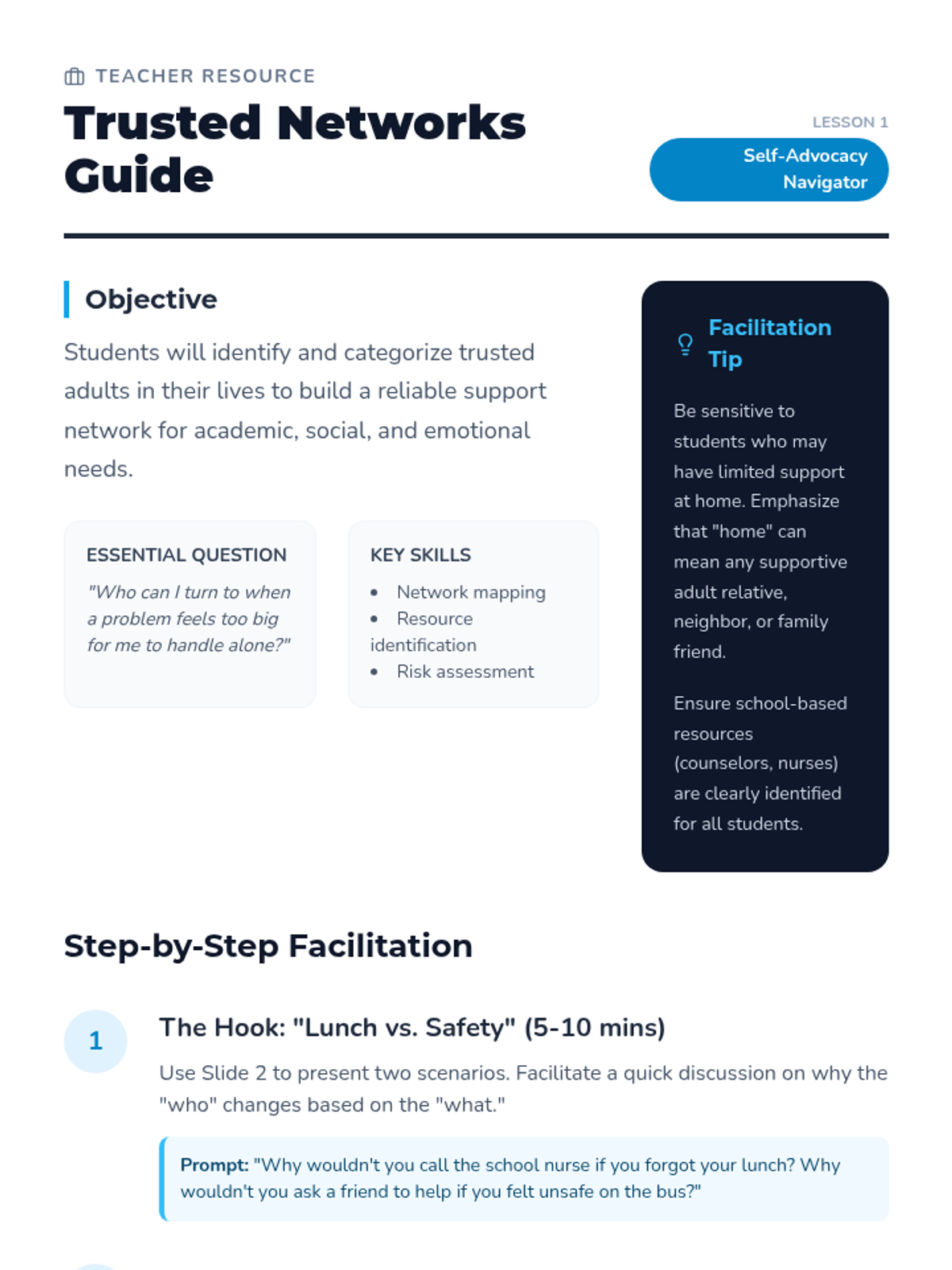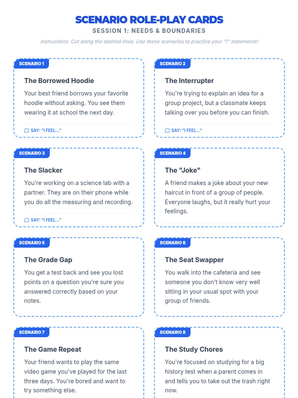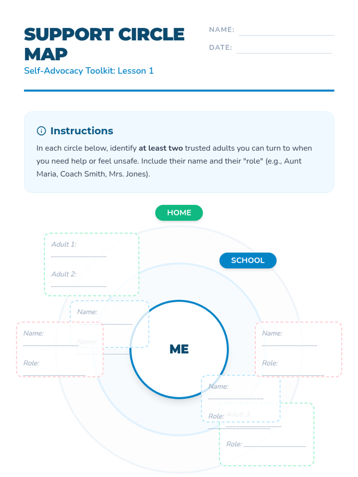 A comprehensive sequence designed to empower sixth-grade students with the skills to identify support systems, set healthy boundaries, and communicate their needs effectively. Students move from mapping trusted networks to practicing assertive communication and navigating complex social scenarios.