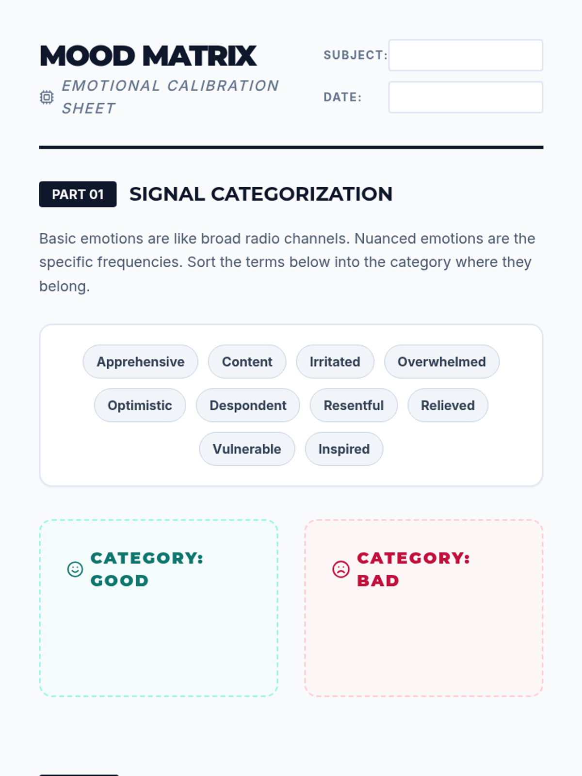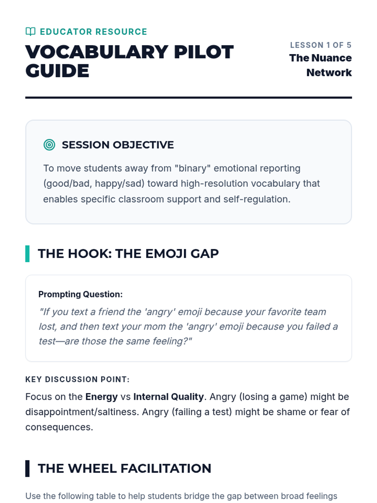 This sequence equips 8th-grade students with advanced emotional vocabulary and physiological awareness to accurately self-assess their readiness to learn. Students will develop a standardized 1-10 readiness scale and learn to articulate specific needs through professional communication strategies for daily check-ins.