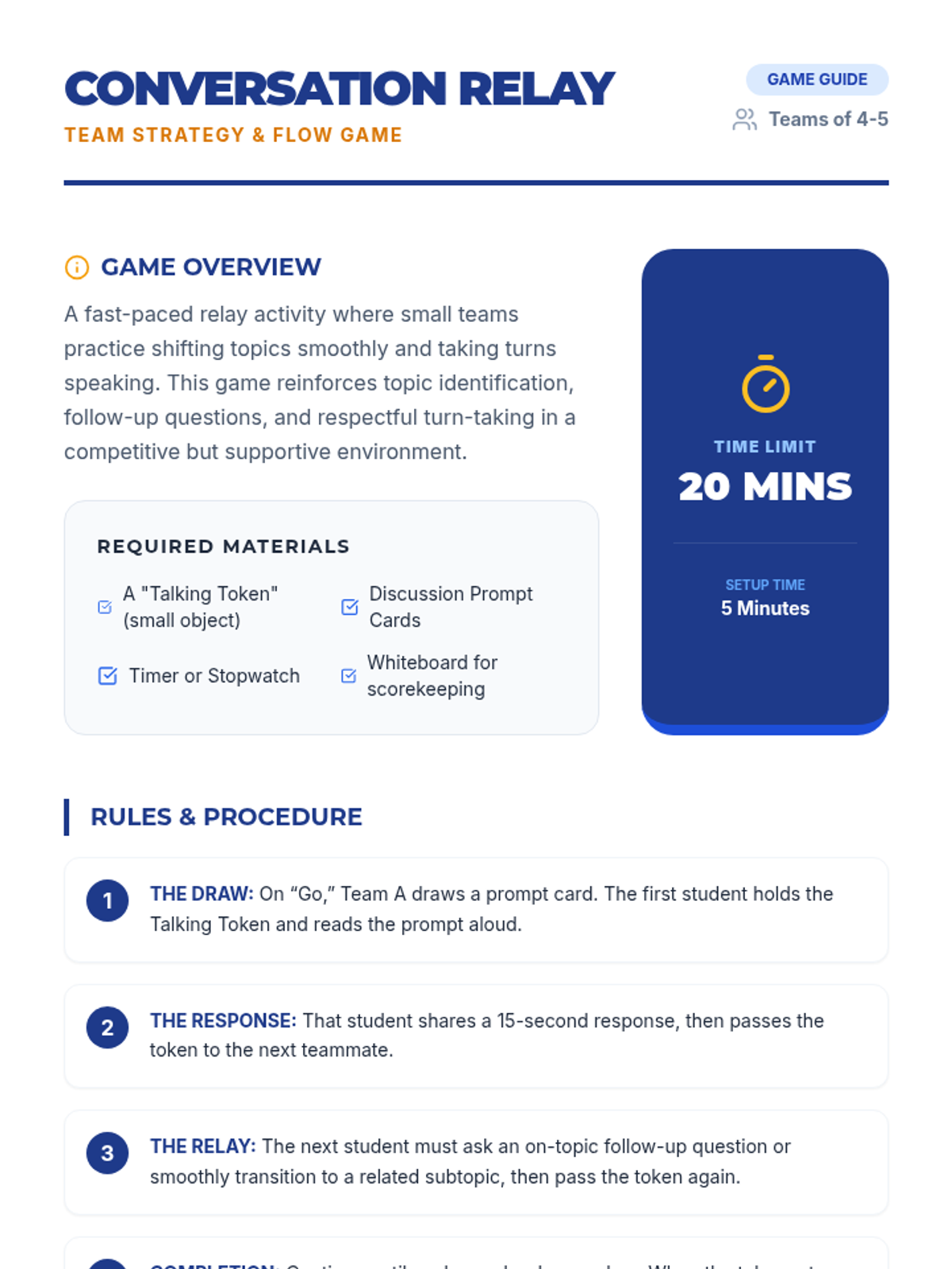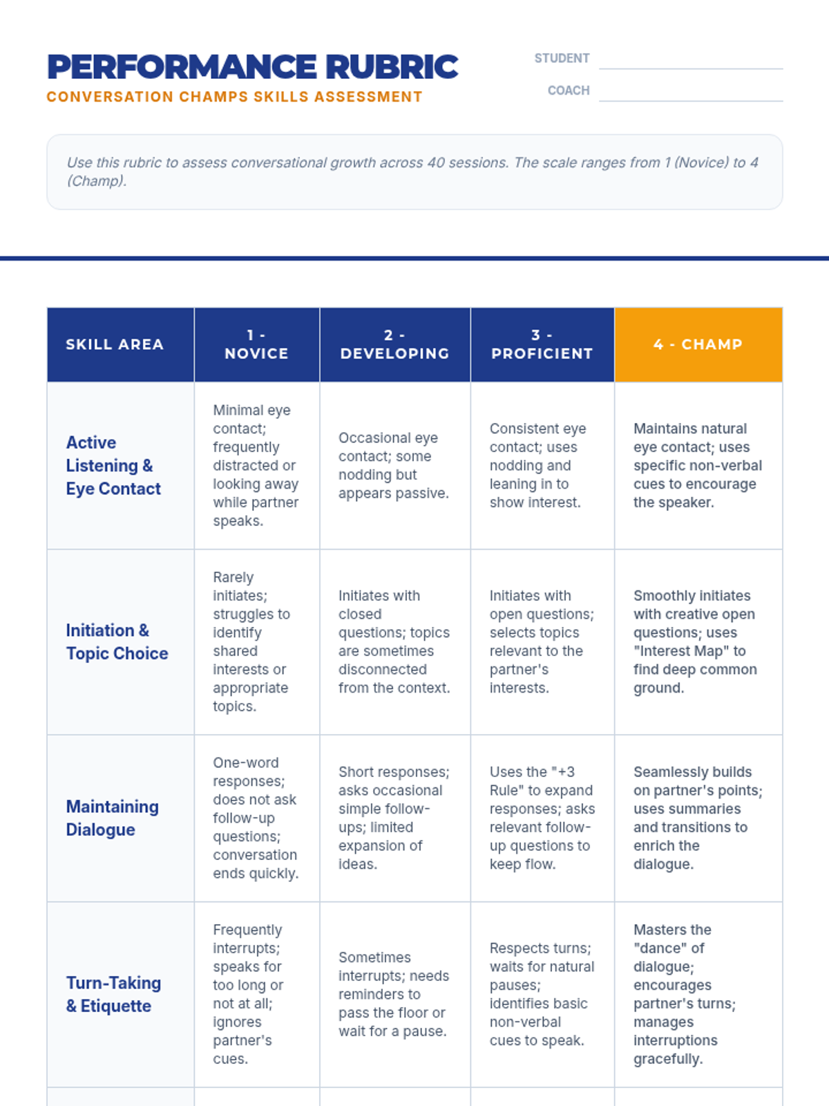 A social communication unit focused on mastering the art of conversation, from initiation to maintaining flow and condensing thoughts for better reciprocity.