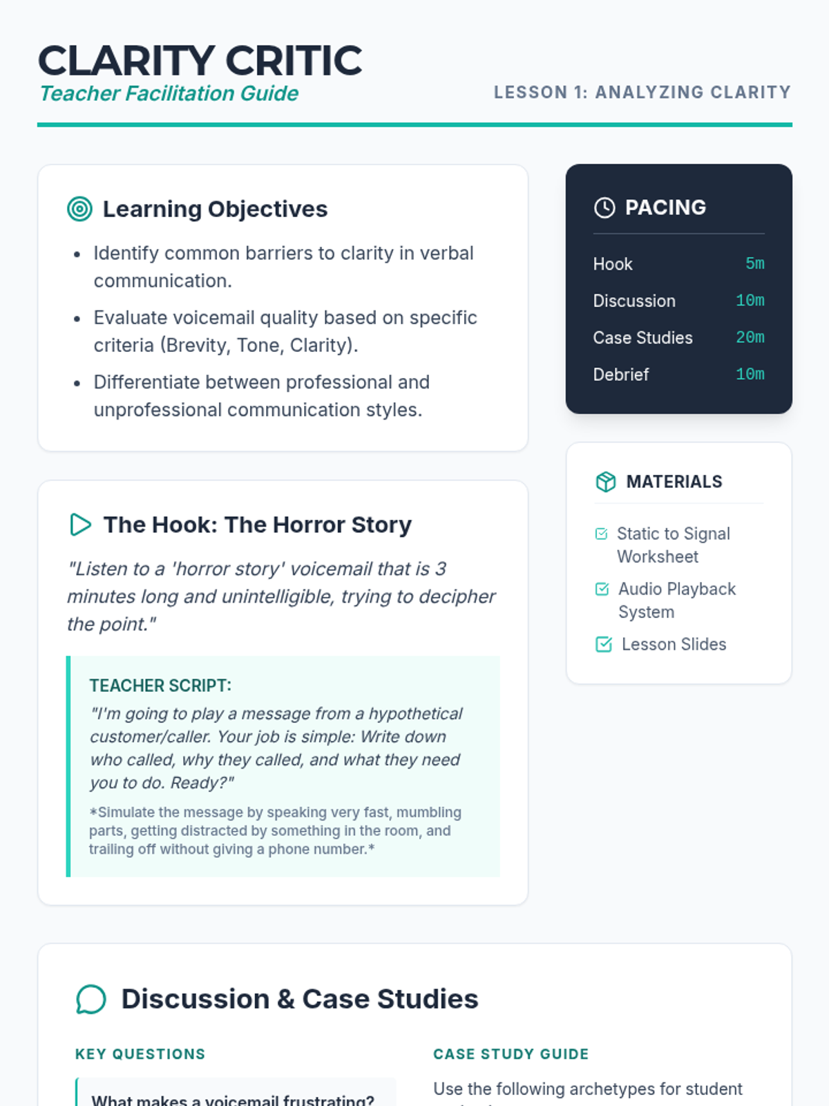 This project-based sequence explores the world of asynchronous audio communication, specifically voicemail systems. Students investigate professional standards, script their own greetings, and practice leaving clear, actionable messages, culminating in a digital audio portfolio.