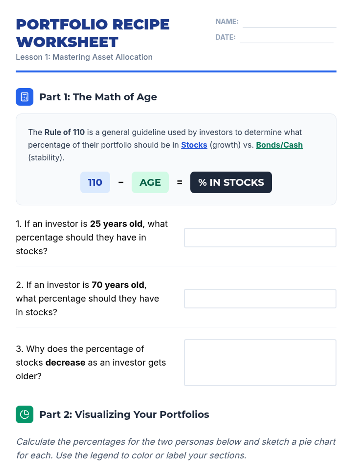 A comprehensive 8th-grade project-based sequence where students act as portfolio managers to build long-term investment strategies, focusing on asset allocation, fee impacts, and dollar-cost averaging.