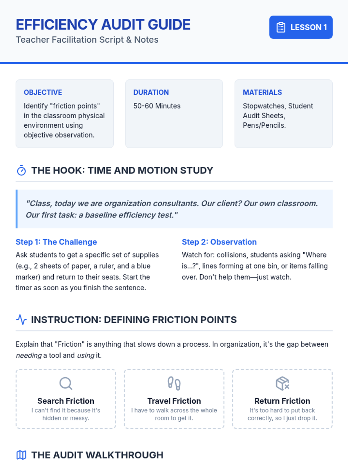 A project-based unit where students act as organization consultants to evaluate, redesign, and implement efficient physical systems in their classroom. Students learn systems thinking, visual communication, and the psychology of environmental design to create a more functional learning space.