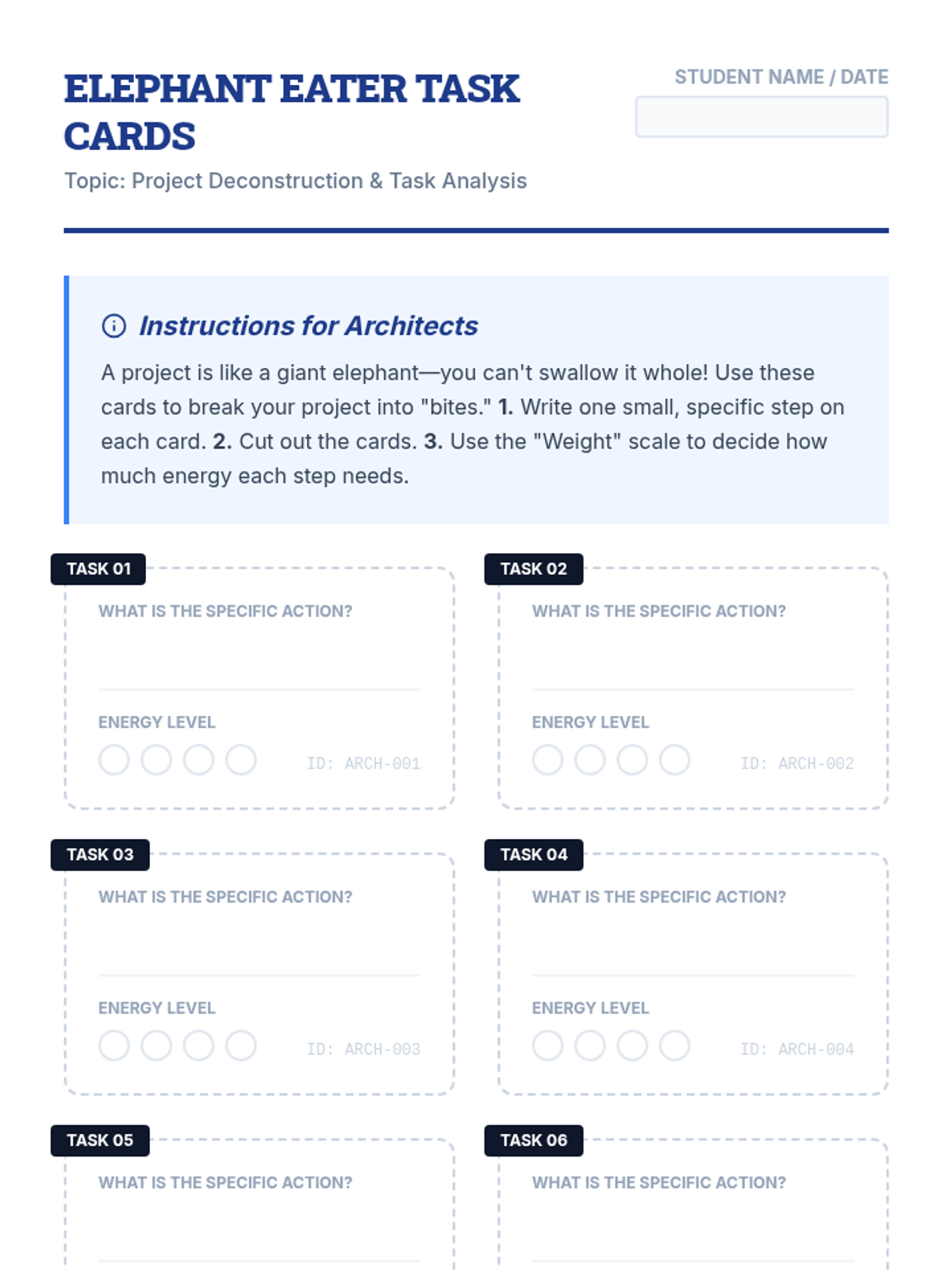 This sequence prepares 8th-grade students for the increased academic demands of high school by teaching long-term project management through visual scheduling and organization. Students learn to 'chunk' large assignments, use backward planning, monitor progress with Kanban boards, and manage focus using interval timers.