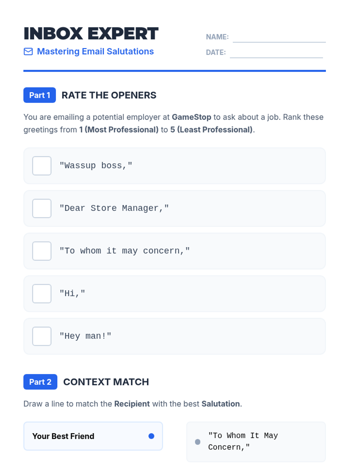 This 8th-grade sequence focuses on digital communication etiquette, teaching students how to navigate greetings and social norms in emails, texts, video calls, and voicemails. Students learn to differentiate between formal and informal contexts to build positive digital footprints and professional identities.