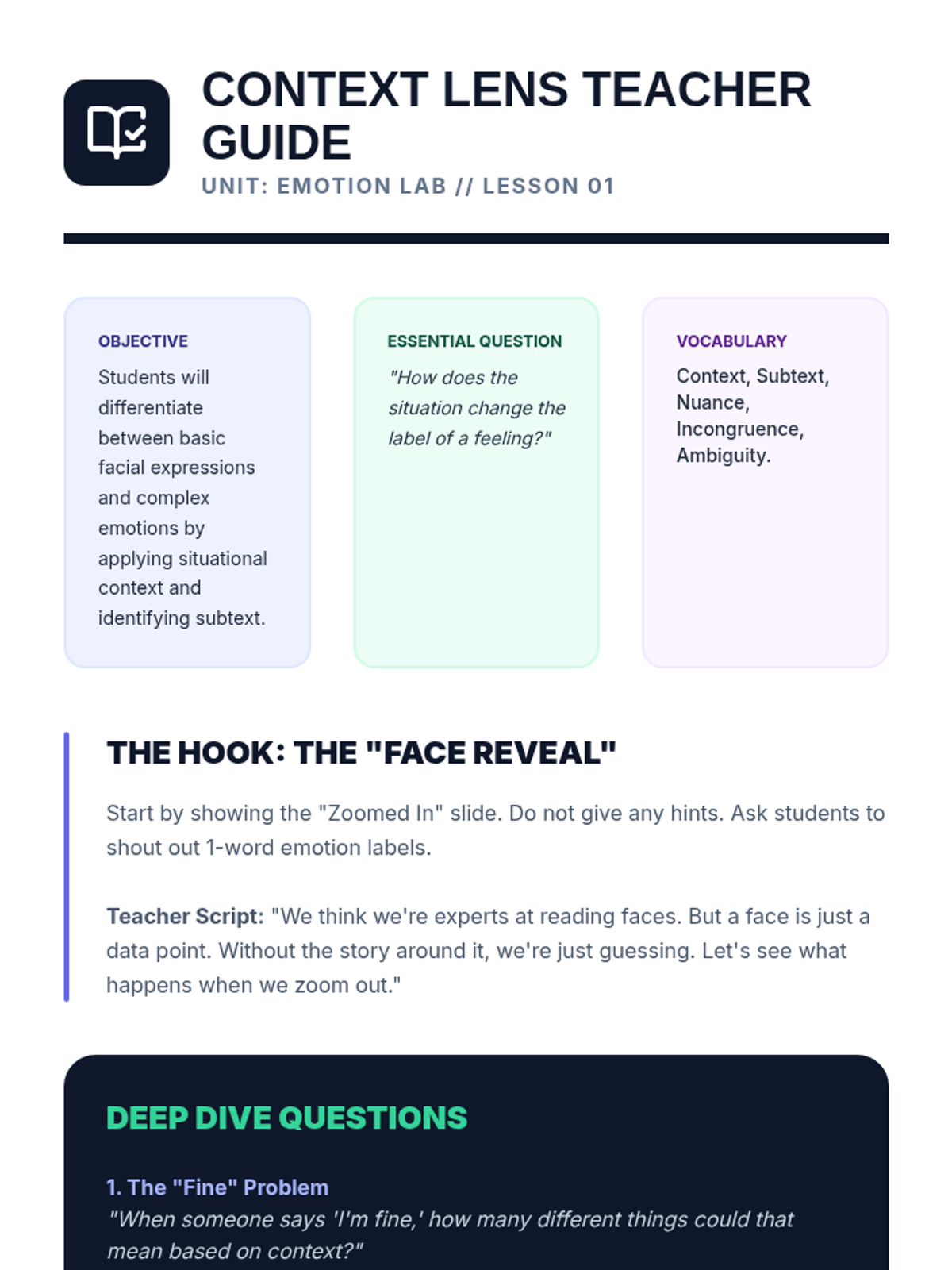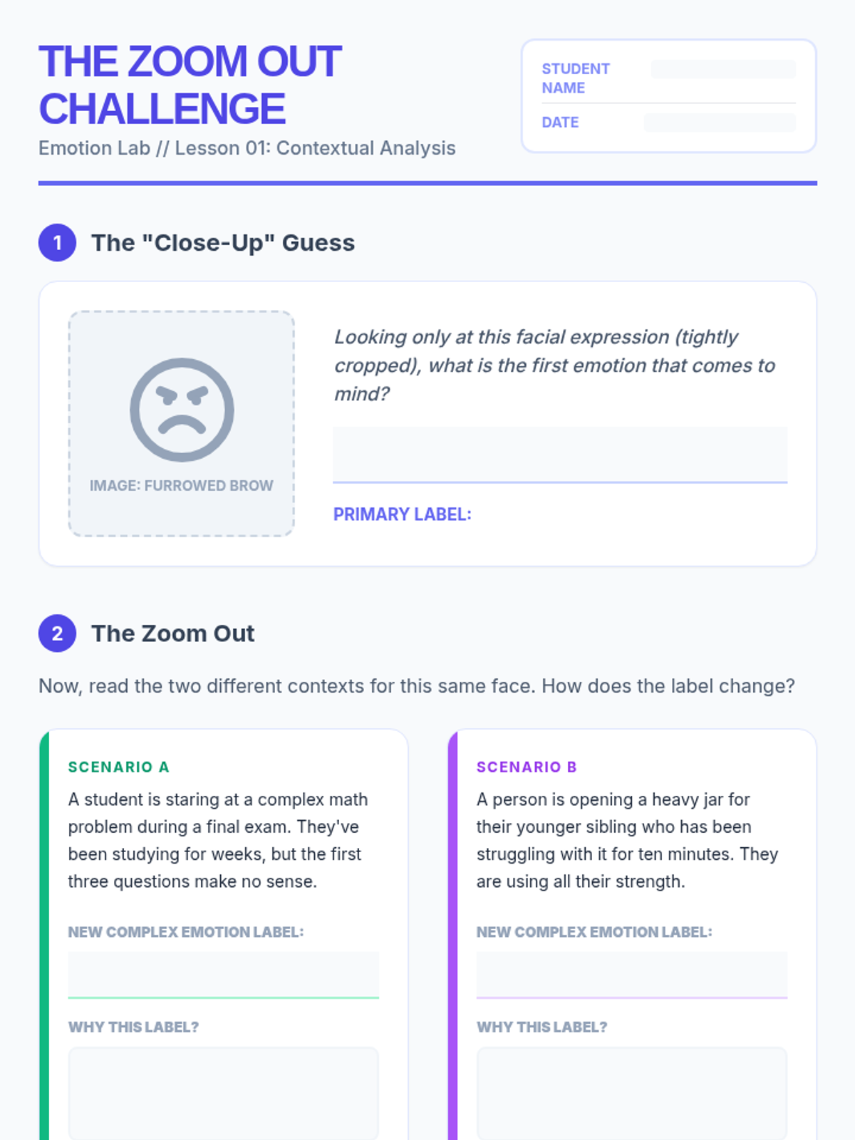 A project-based unit exploring how context and digital platforms influence emotional expression and interpretation. Students learn to label complex emotions in media and online interactions, culminating in a peer-to-peer digital empathy guide.
