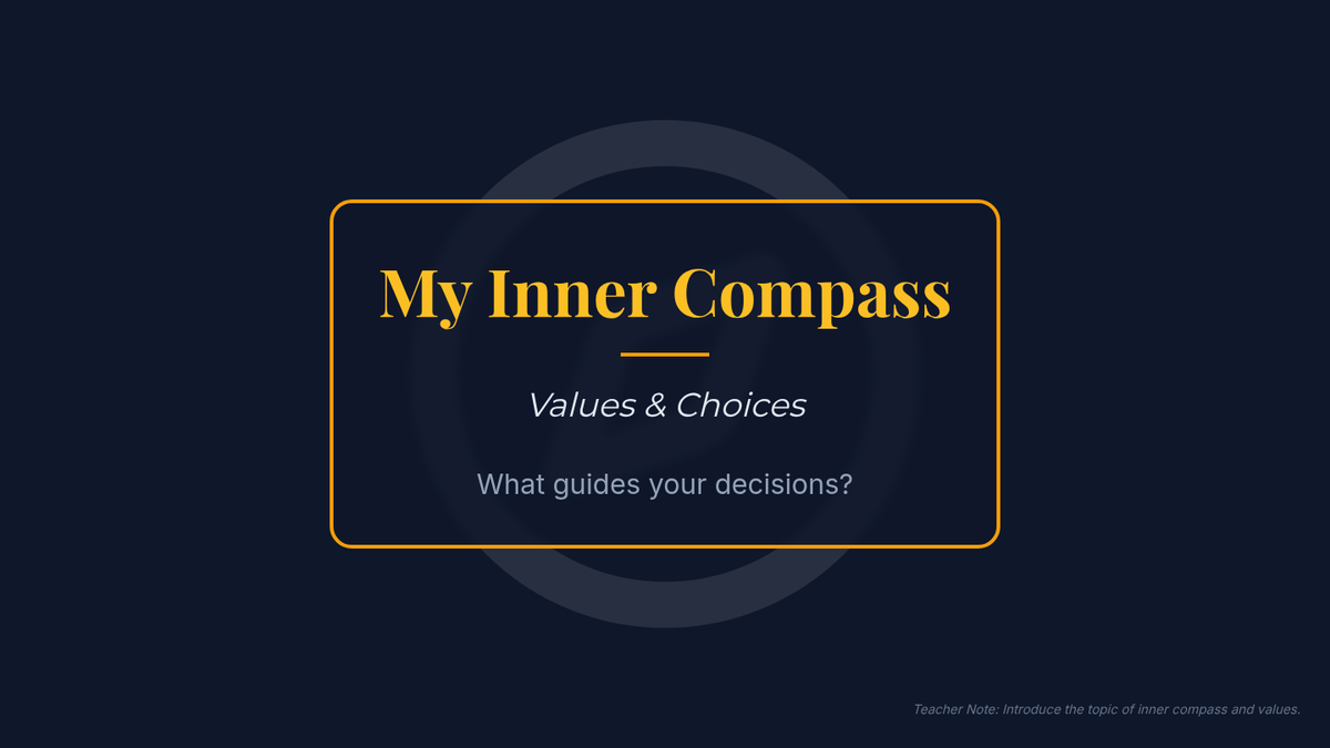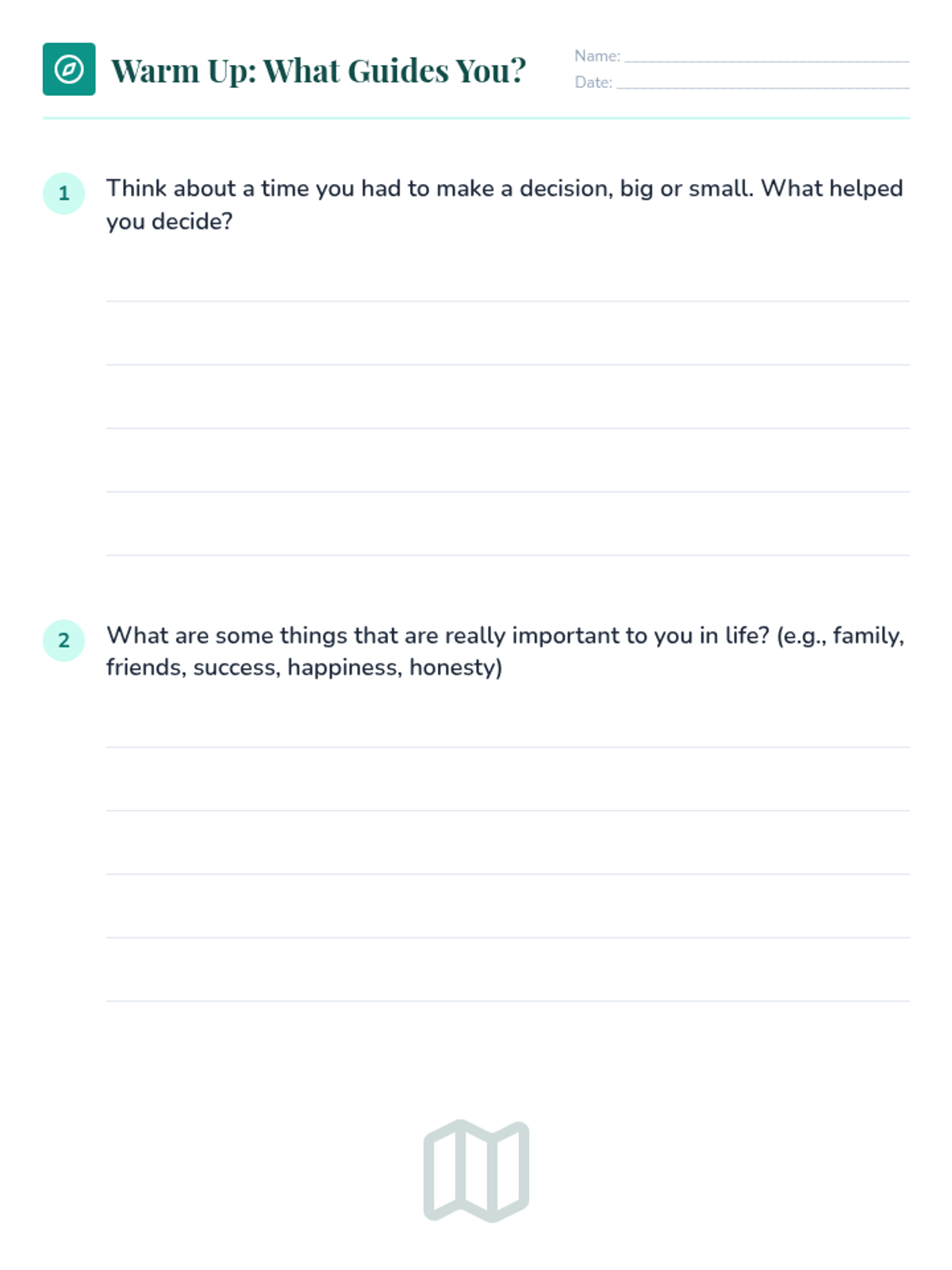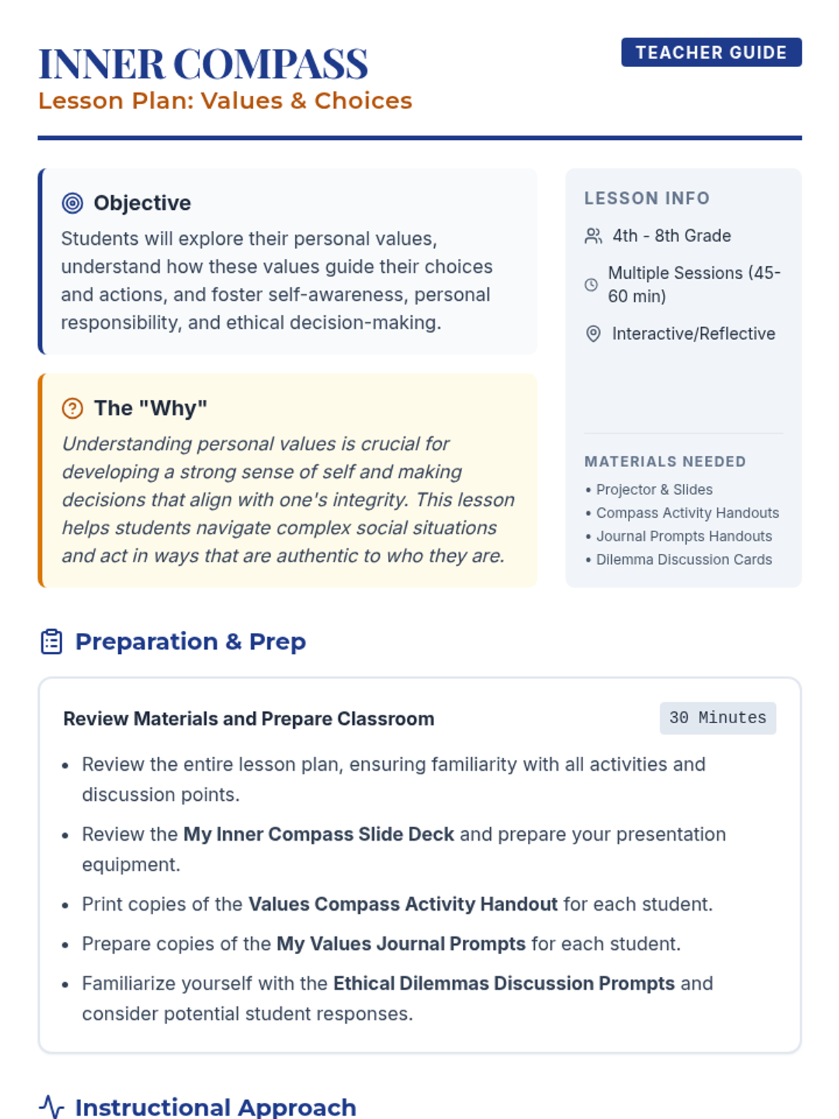 A multi-session series for middle school students to explore personal values and how they act as an 'inner compass' for ethical decision-making.
