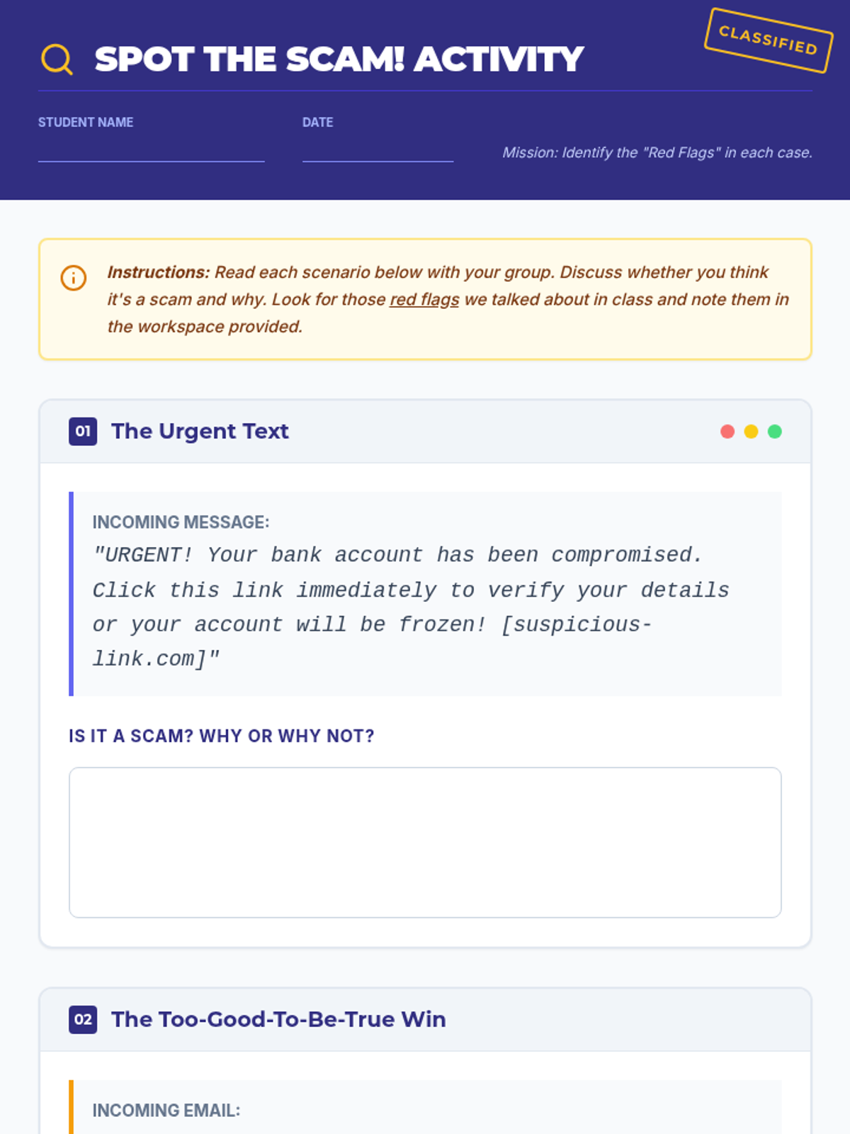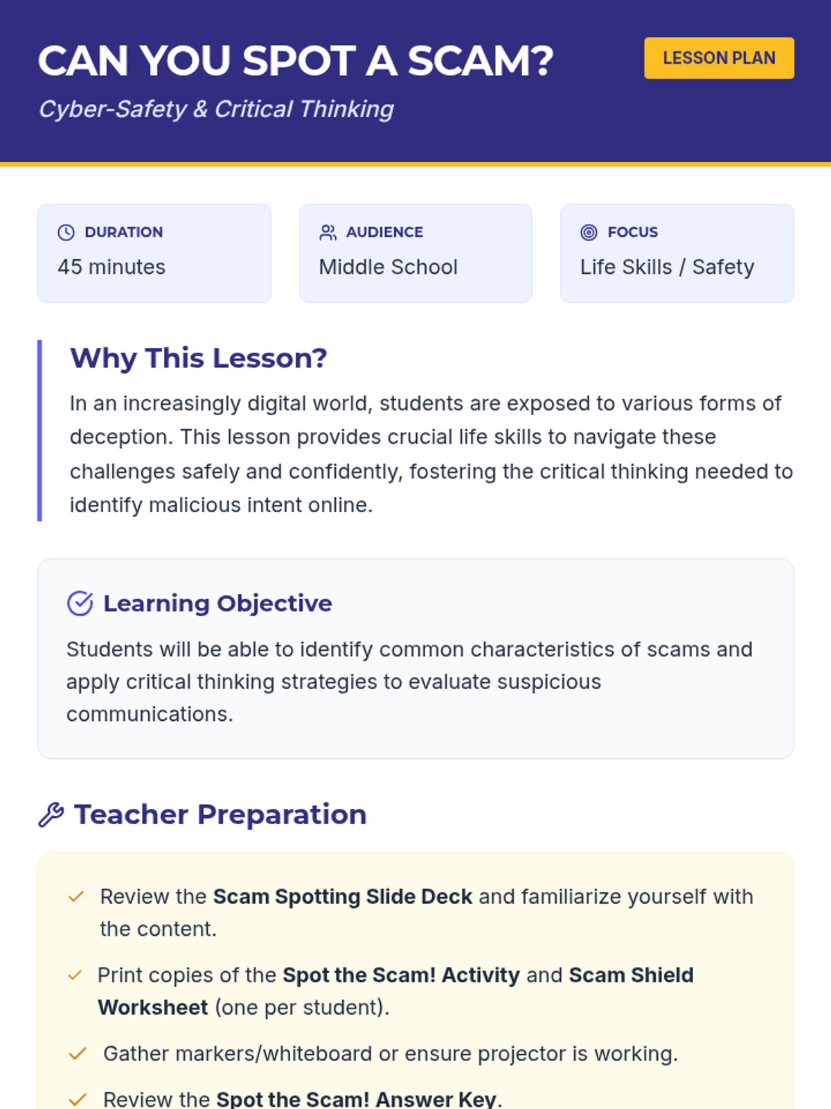 A sequence of two life skills lessons designed to empower students with critical thinking skills for digital safety and personal character development.