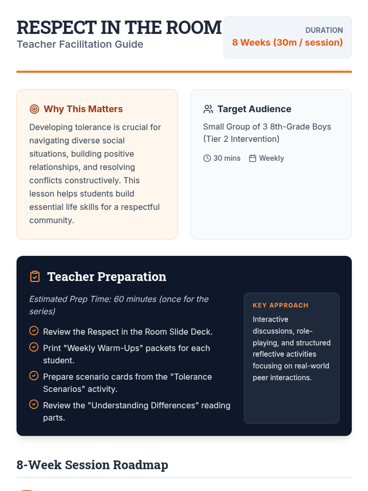 An 8-week Tier 2 intervention for 8th-grade boys designed to foster tolerance, empathy, and respectful communication.