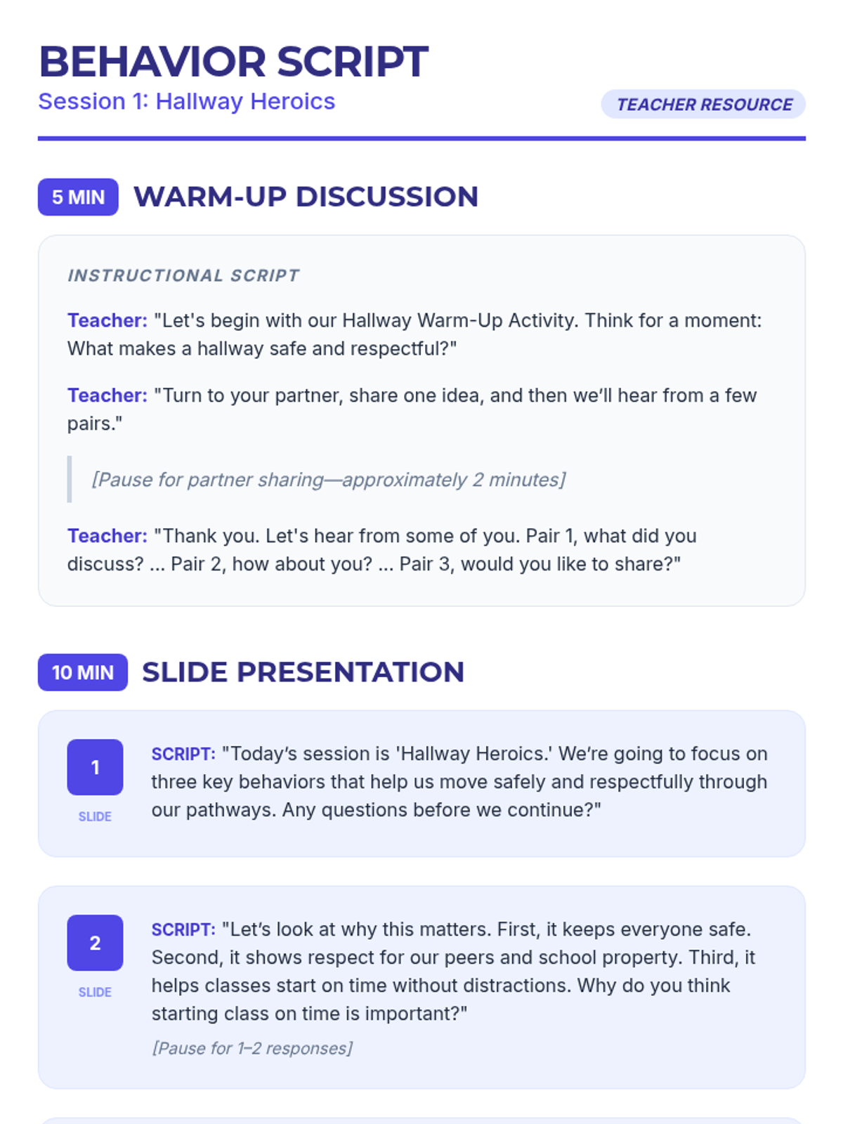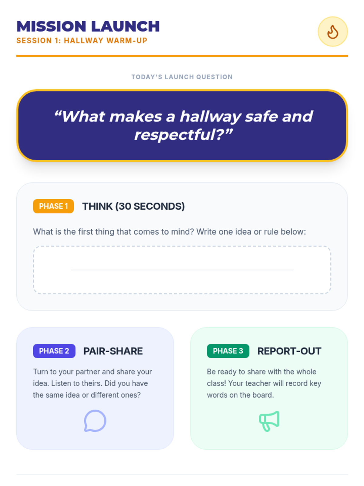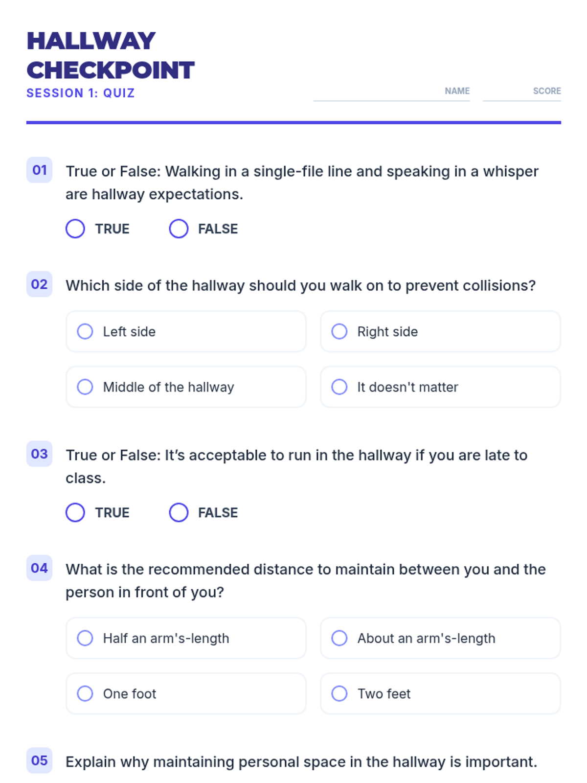 A three-session social-emotional learning series for middle schoolers focusing on school-wide behavior expectations in the hallway, cafeteria, and playground. Students learn to navigate common spaces with respect, safety, and responsibility through interactive discussions, reading, and practice.