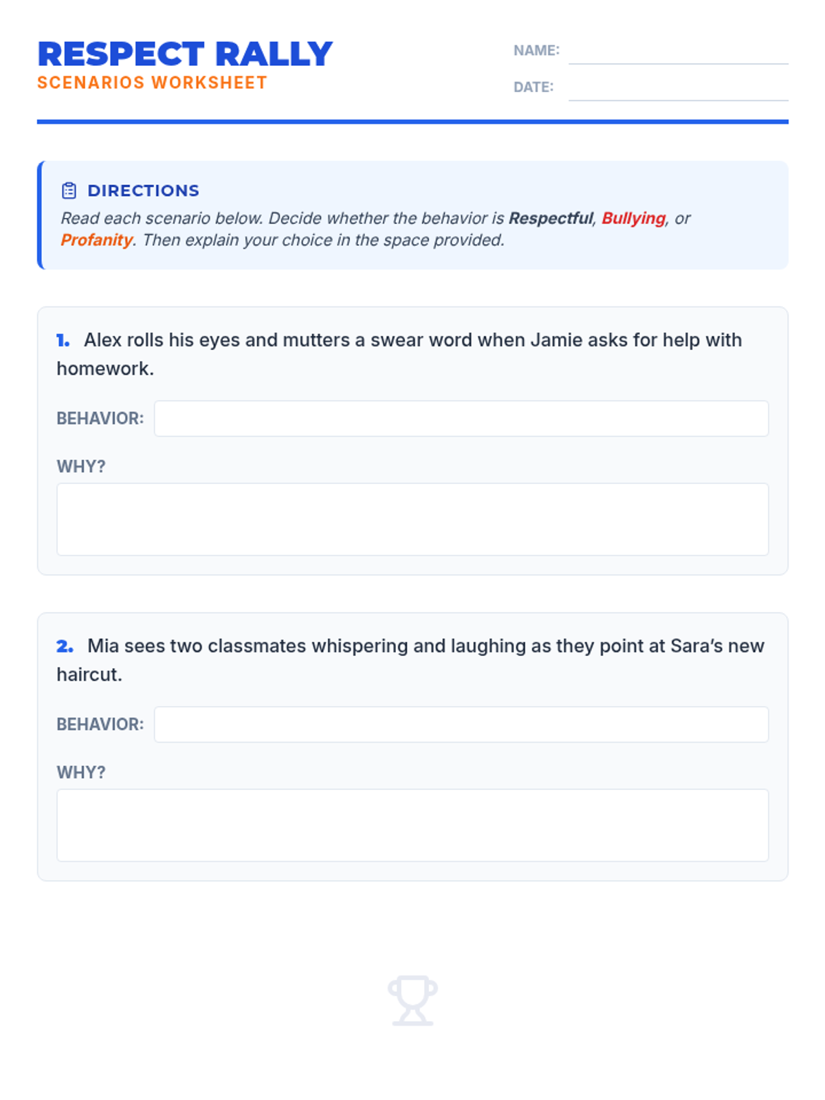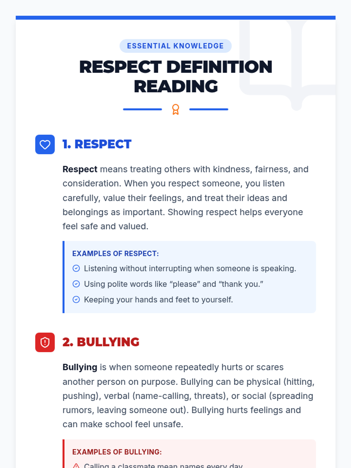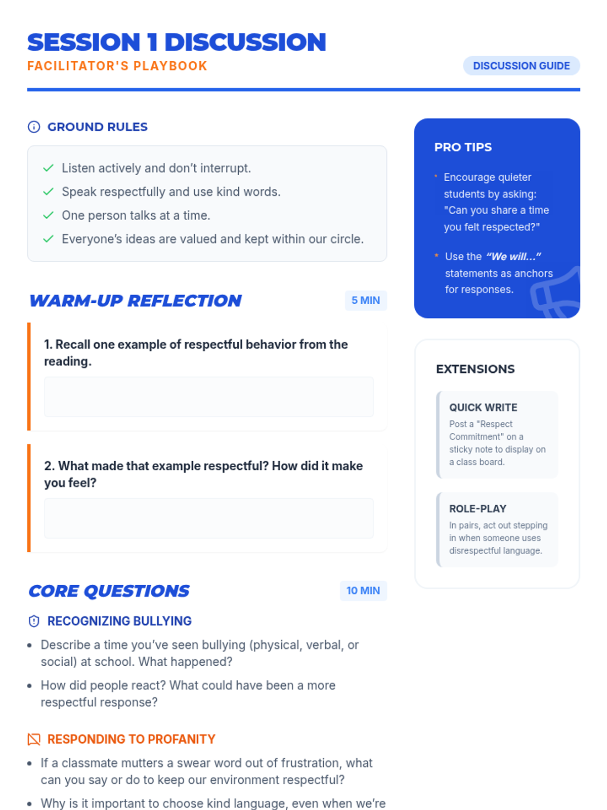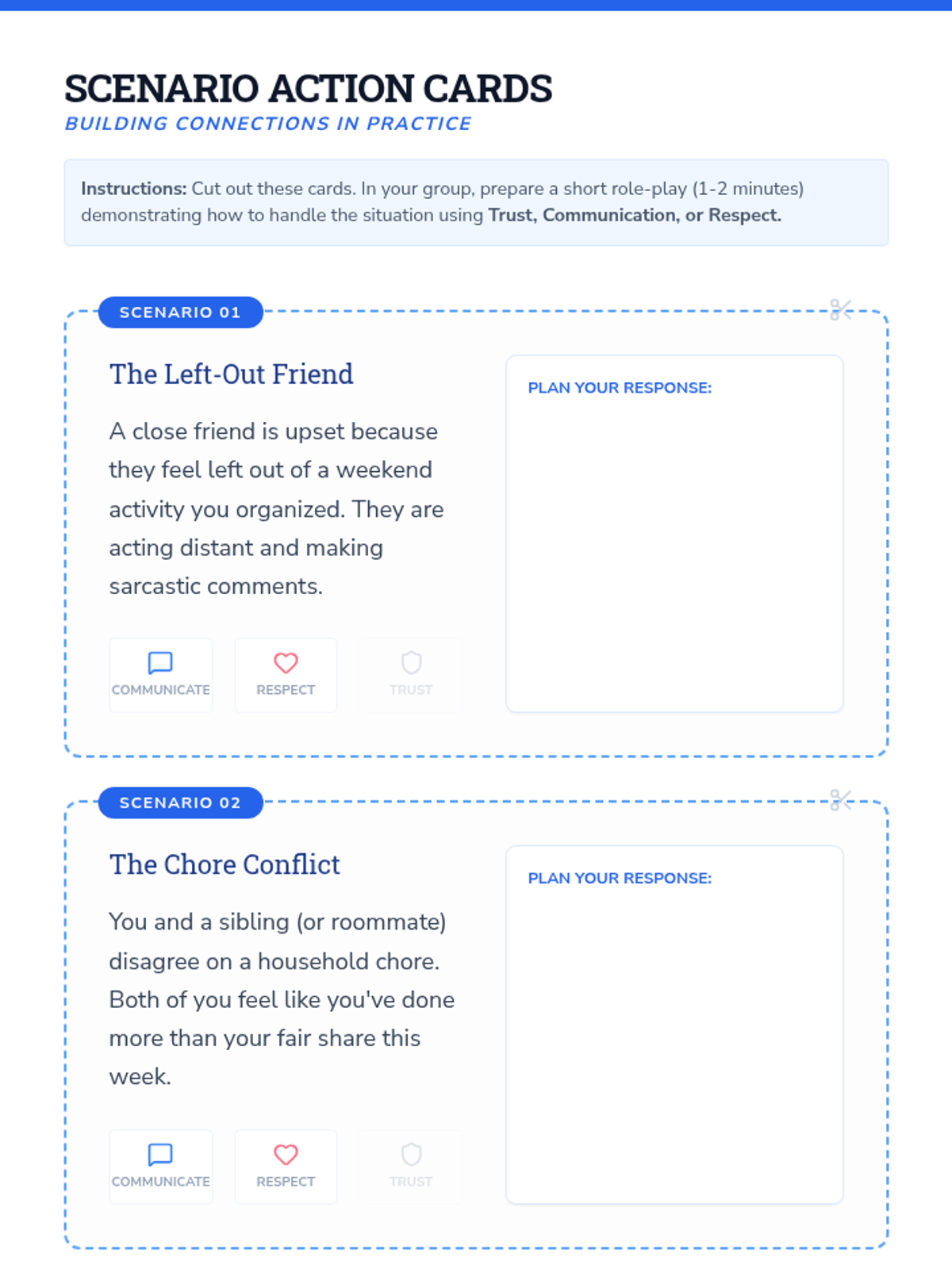 A two-session sequence for middle schoolers focused on defining respect, preventing bullying, and mastering conflict resolution through interactive games and role-play.