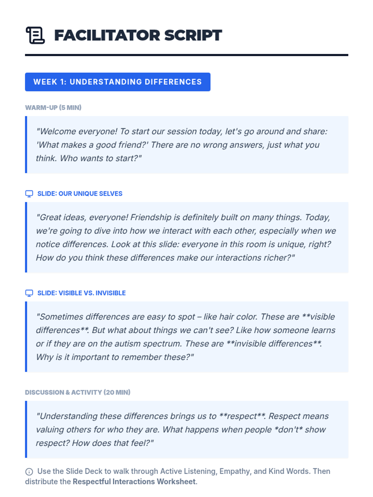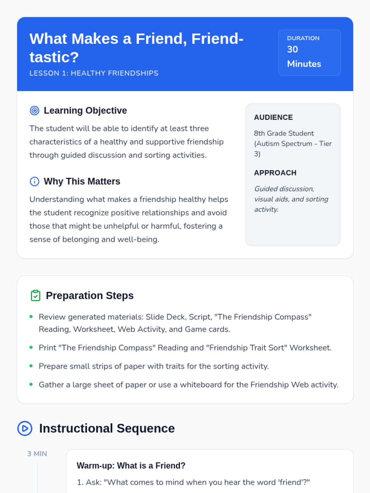 A comprehensive 5-lesson series for 8th-grade students on the Autism spectrum, focusing on healthy friendships, assertive communication, personal boundaries, and social cues.