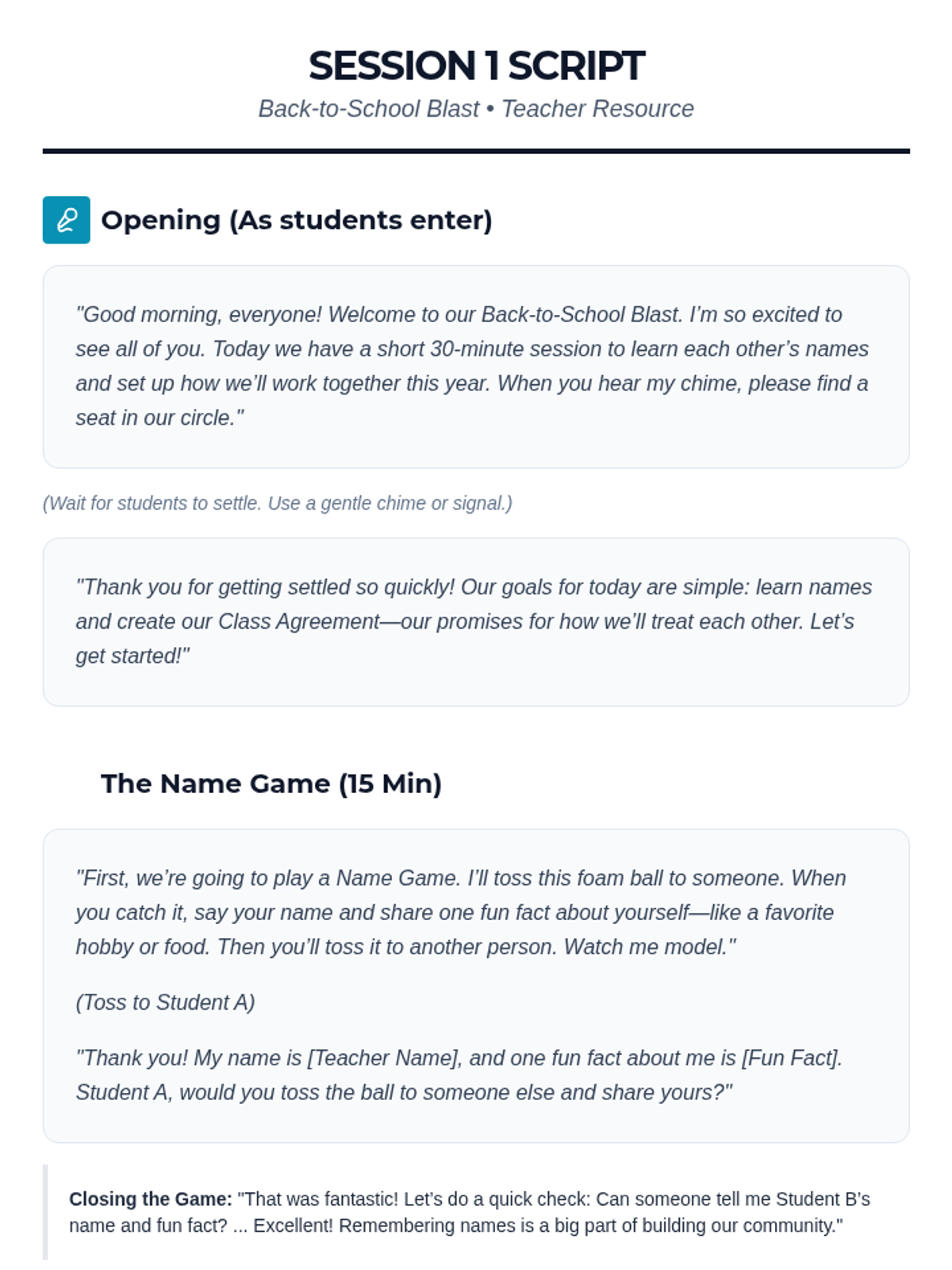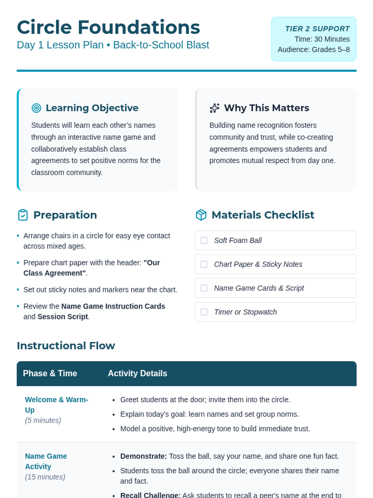 A 5-day series of 30-minute icebreaker sessions for middle schoolers to build rapport, communication, and a positive classroom atmosphere through Tier 2 group supports.