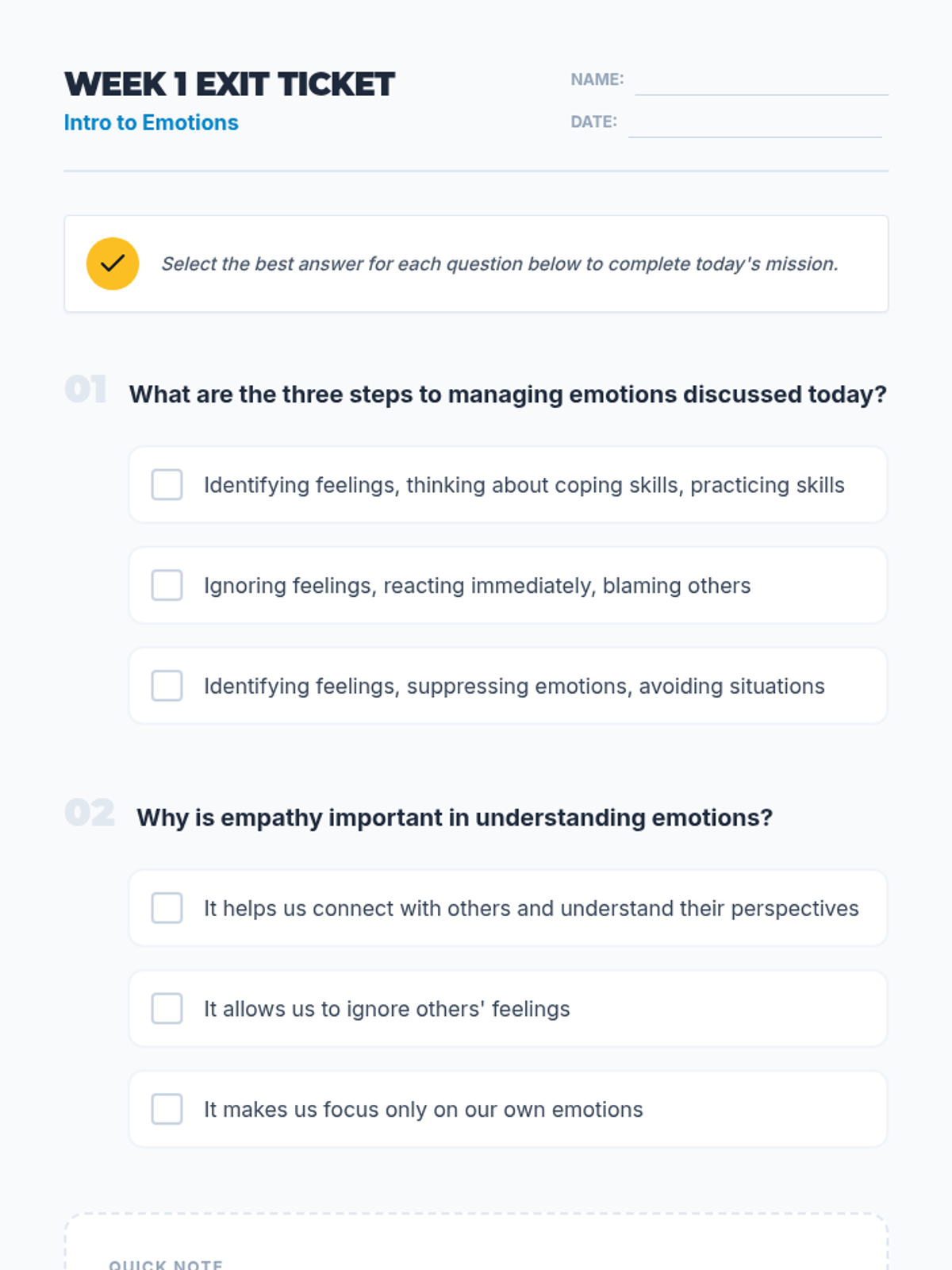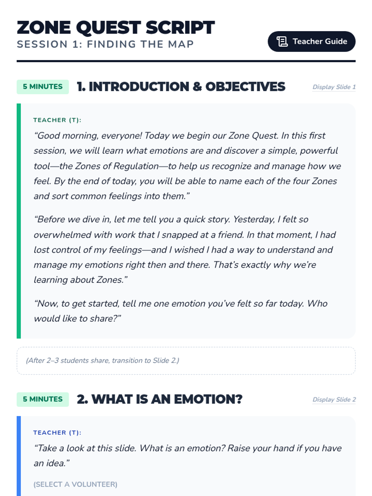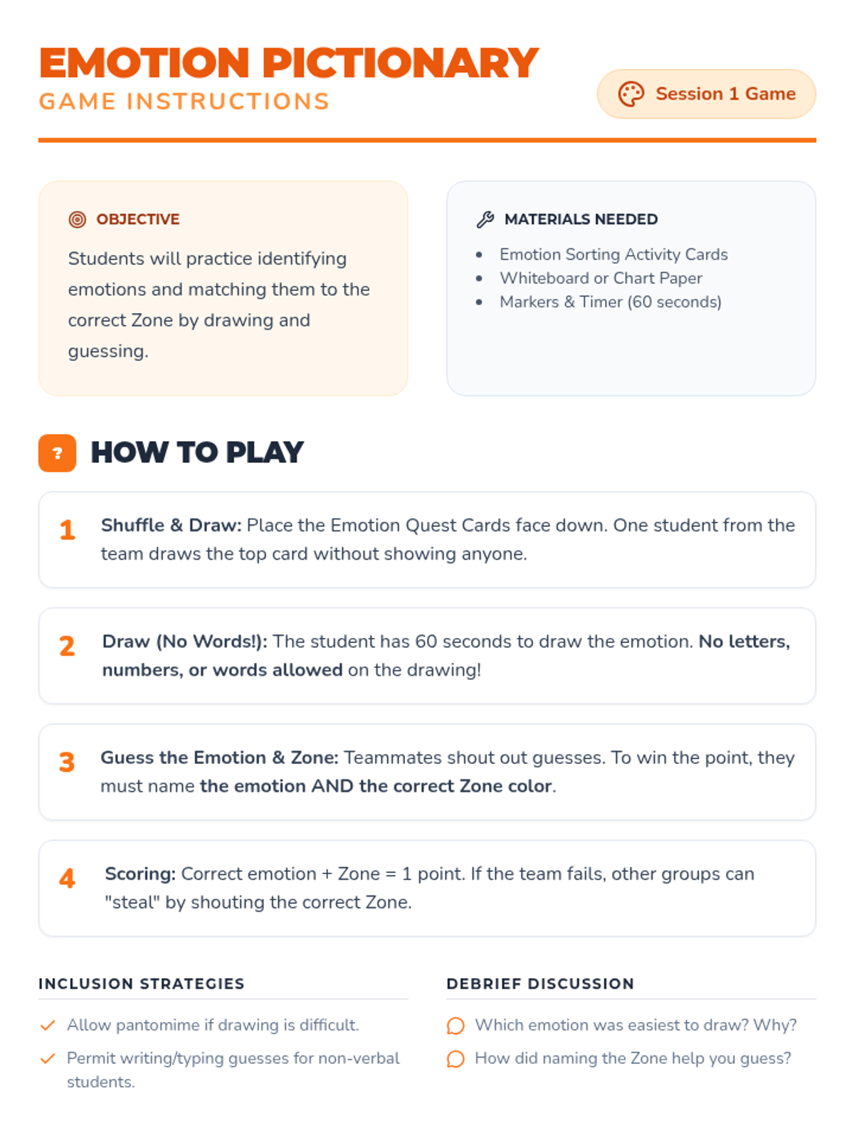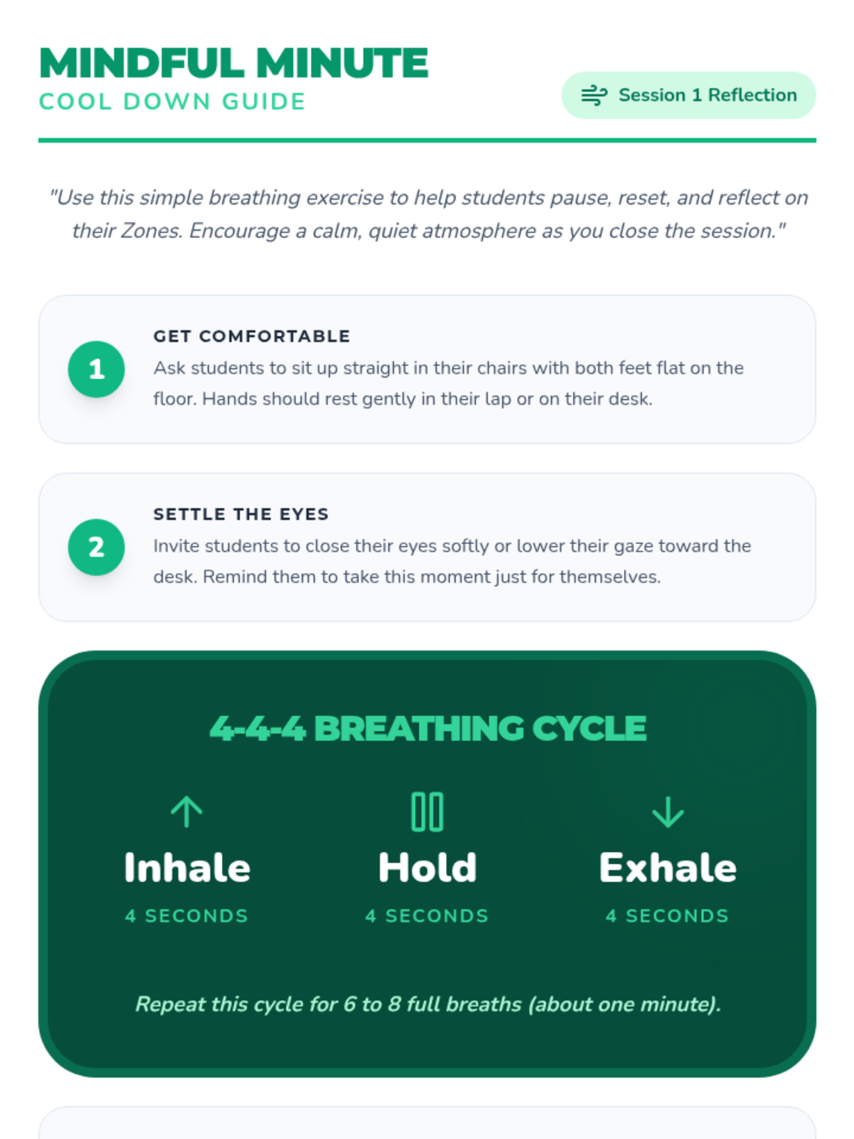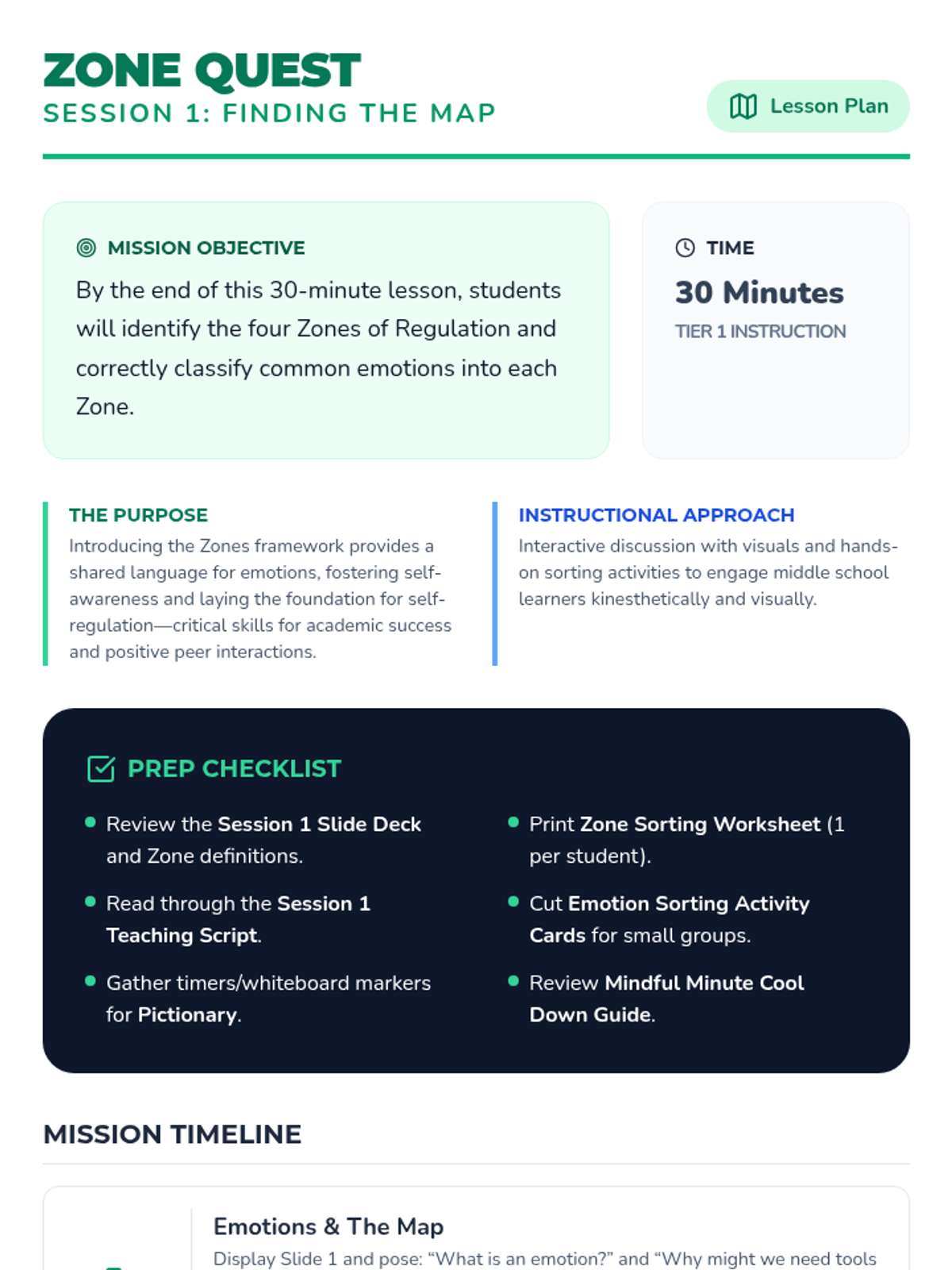 A 3-session Social-Emotional Learning sequence for middle schoolers to identify, understand, and manage emotions using the Zones of Regulation framework. Students move from basic identification to mastering specific self-regulation strategies and creating a personal action plan.