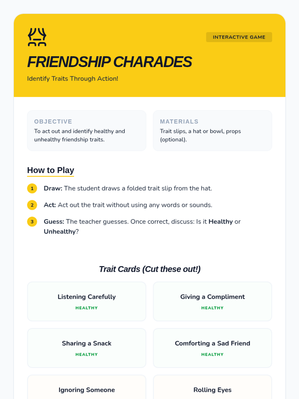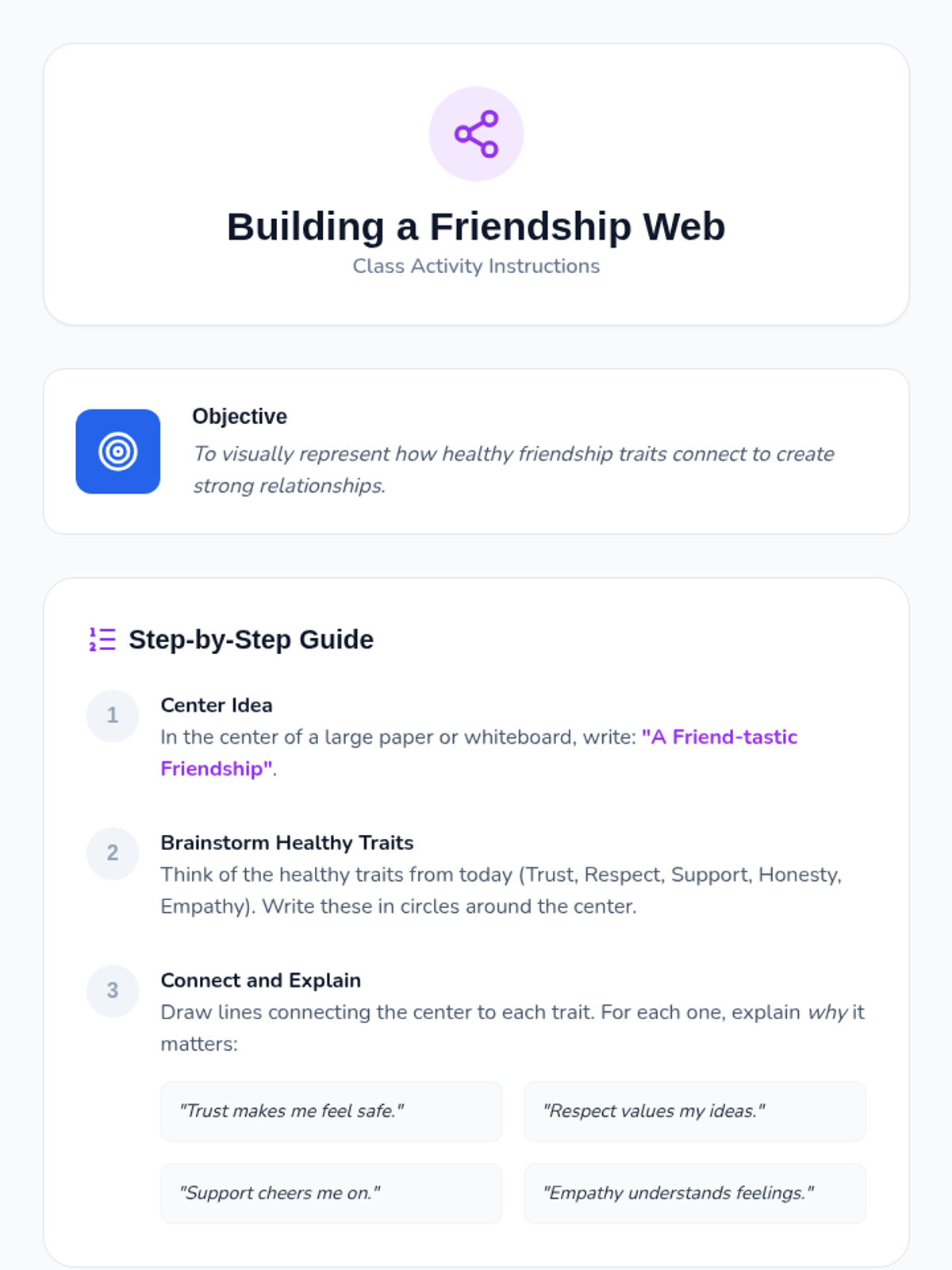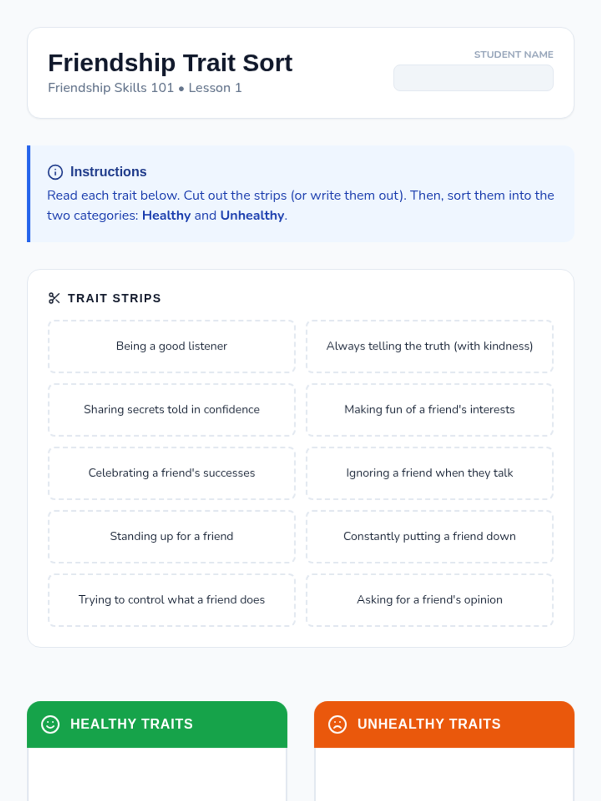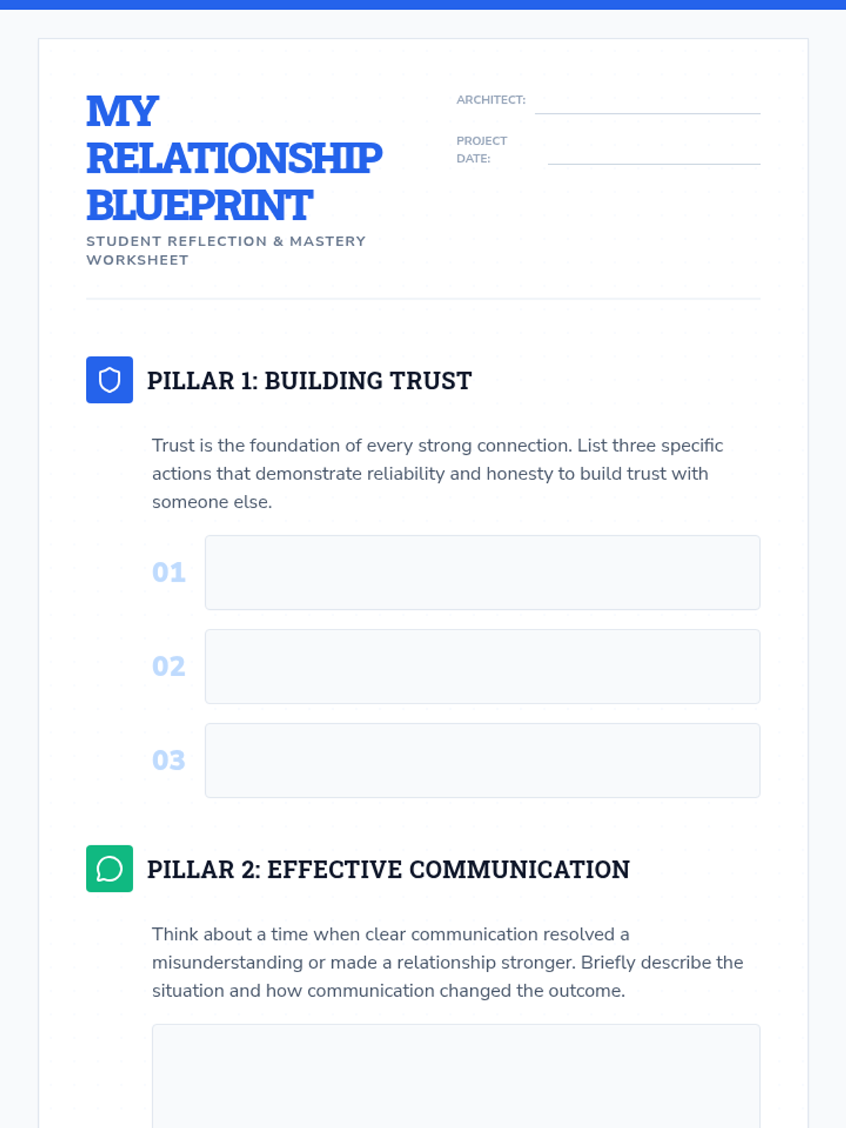 A comprehensive unit for 7th-grade students to identify healthy vs. unhealthy romantic relationship indicators, core values, and personal boundaries. Students will develop a 'Relationship Radar' to navigate social dynamics with emotional safety and autonomy.