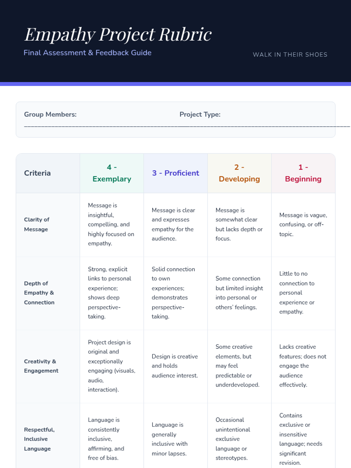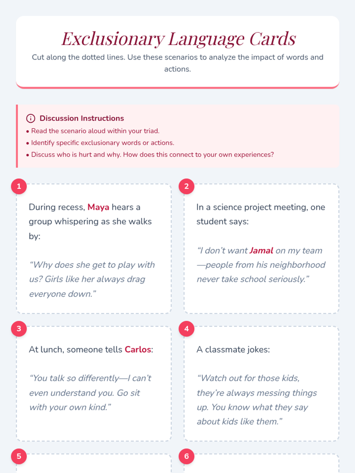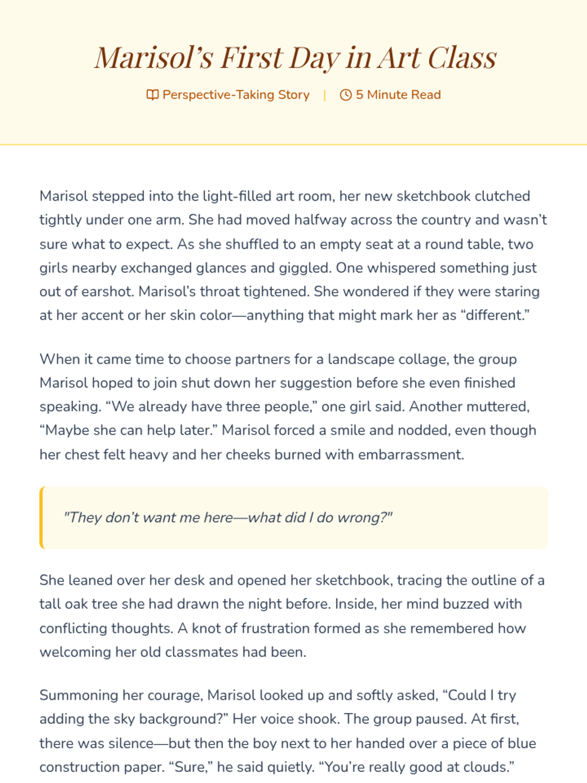 A series of lessons focused on developing empathy, perspective-taking, and active inclusion in middle school students by leveraging shared experiences of exclusion.