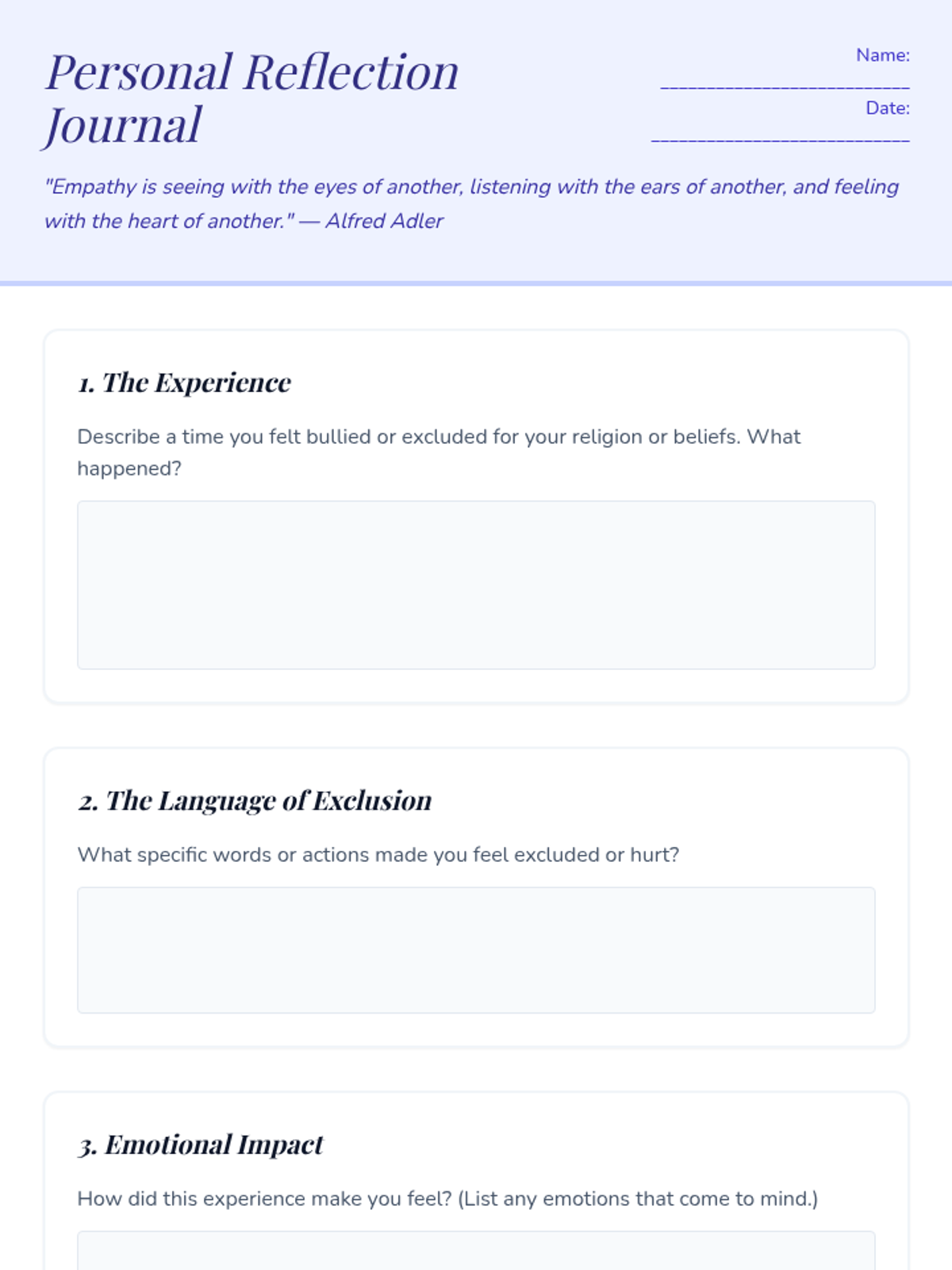Empathetic skill development through emotion recognition, cultural diversity appreciation, and bias confrontation. Targets multi-perspective analysis to support respectful interactions and complex social responses.
