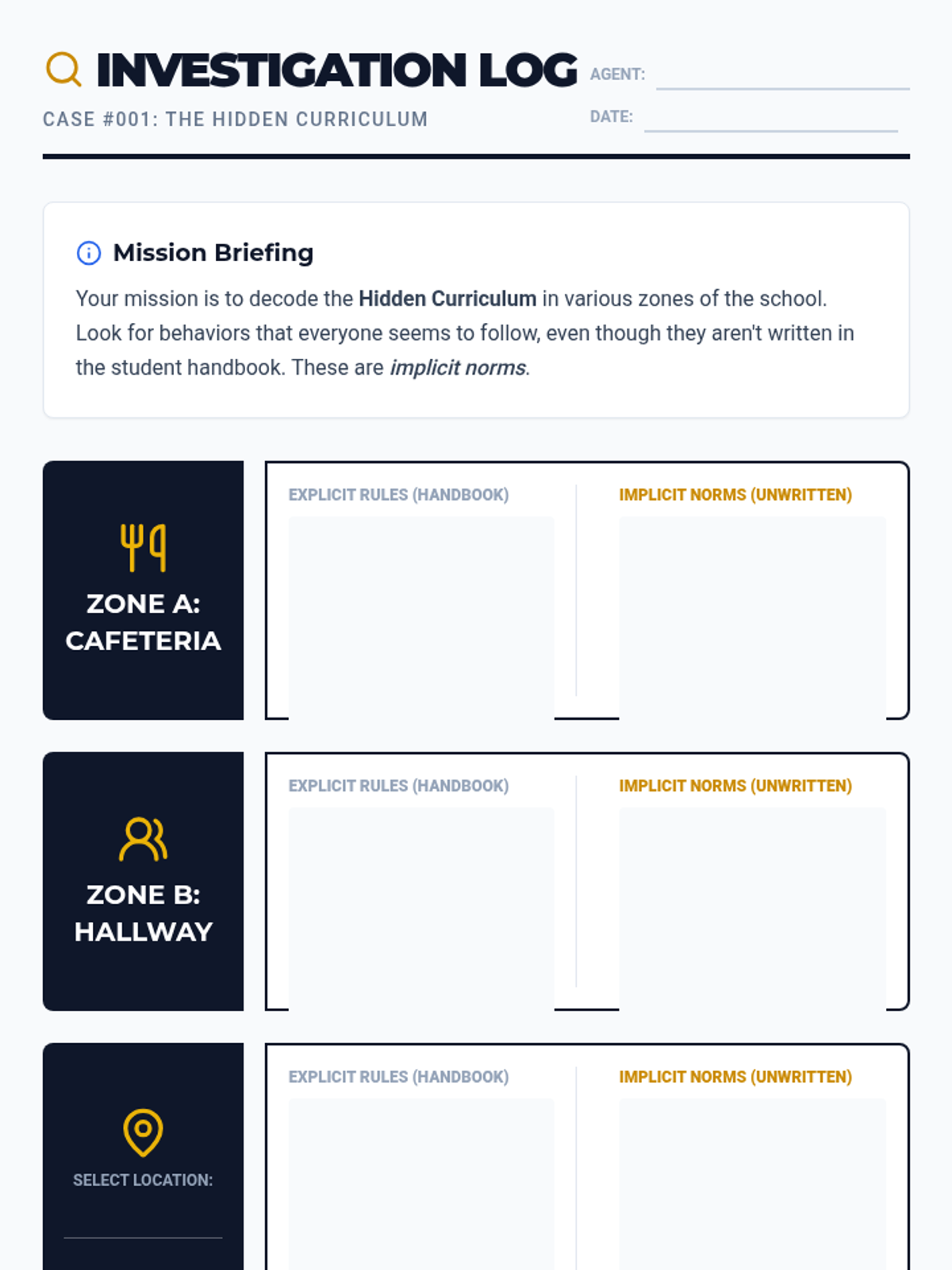 This inquiry-based sequence guides 6th-grade students through decoding the 'hidden curriculum' of middle school social environments. Students observe social cues, identify unwritten rules, explore perspectives, and analyze social narratives to understand the 'why' behind social expectations.