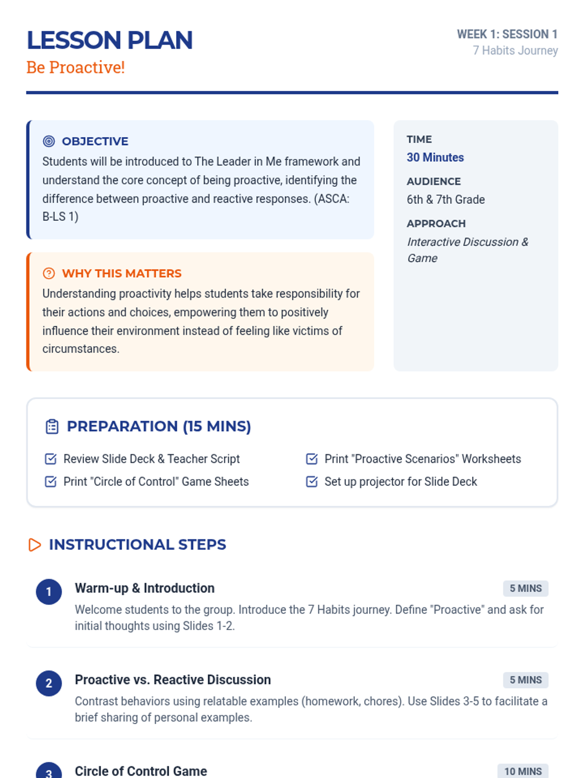A 5-week, small-group intervention series for middle schoolers based on the Leader in Me framework, focusing on the 7 Habits of Highly Effective Teens through interactive lessons, games, and reflections.