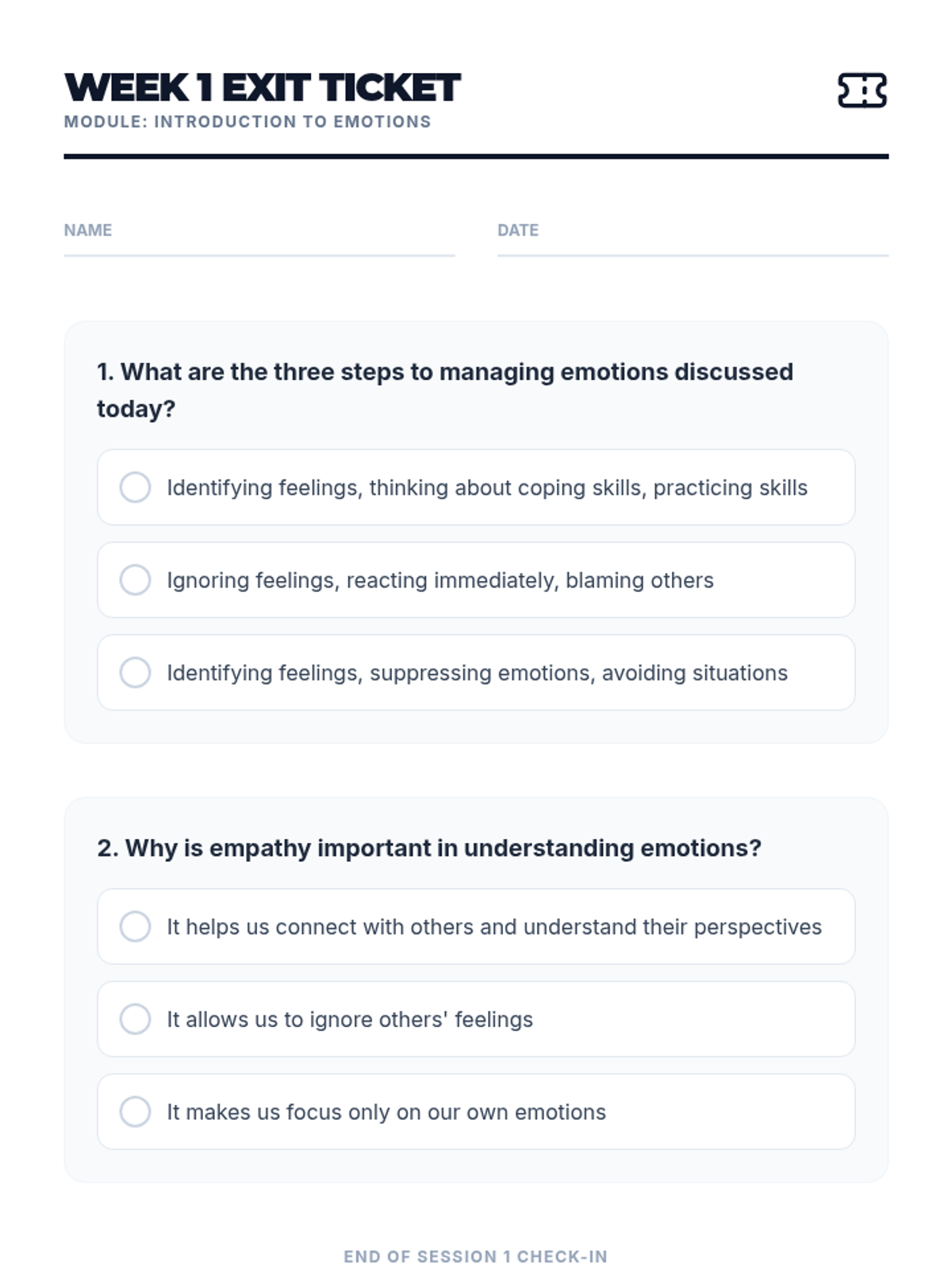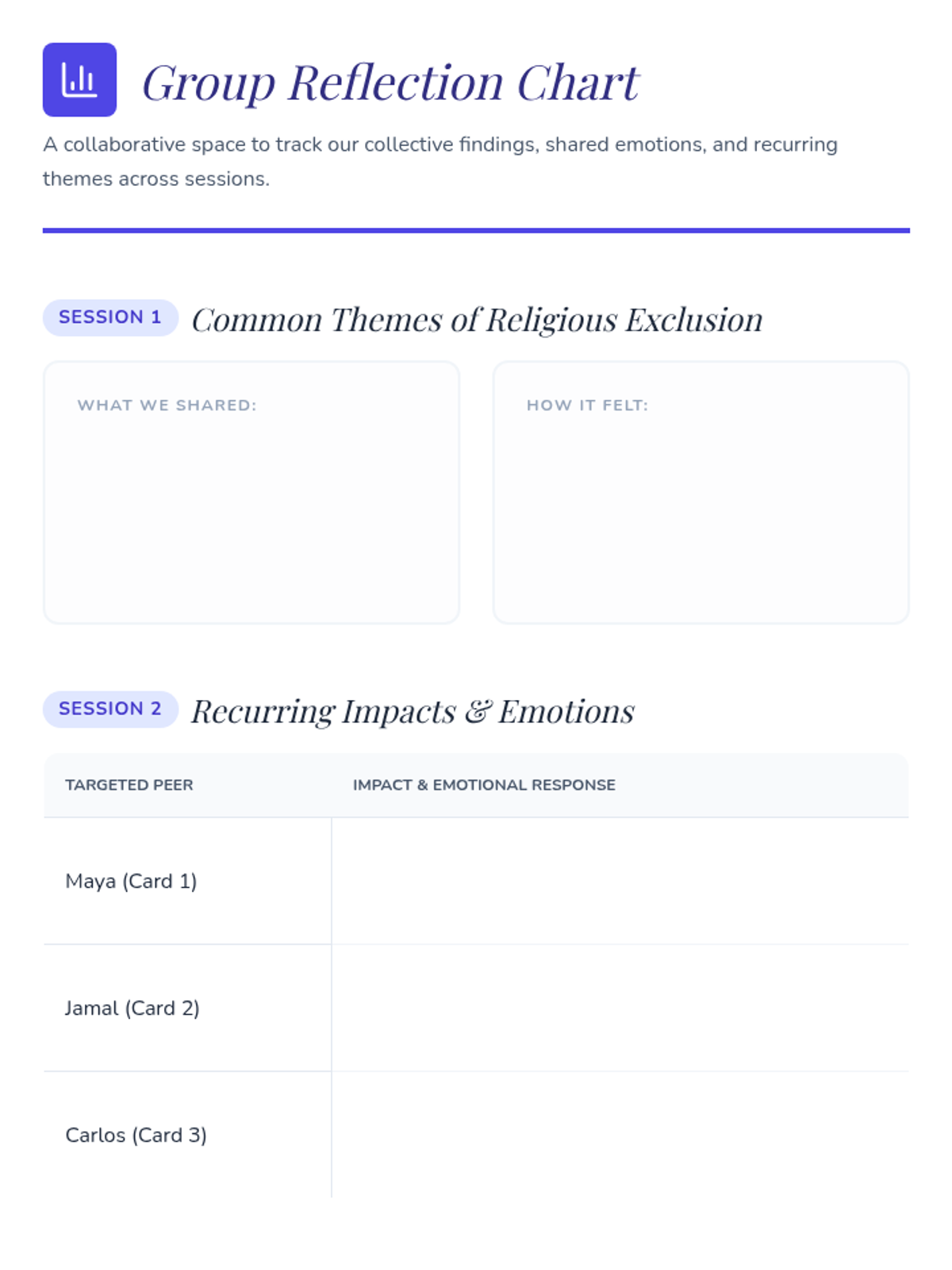 A comprehensive 6-session individual support program for students navigating cultural adjustment, immigrant-related stress, and grief. The sequence focuses on building resilience, honoring cultural identity, and fostering social connections through reflective and interactive activities.