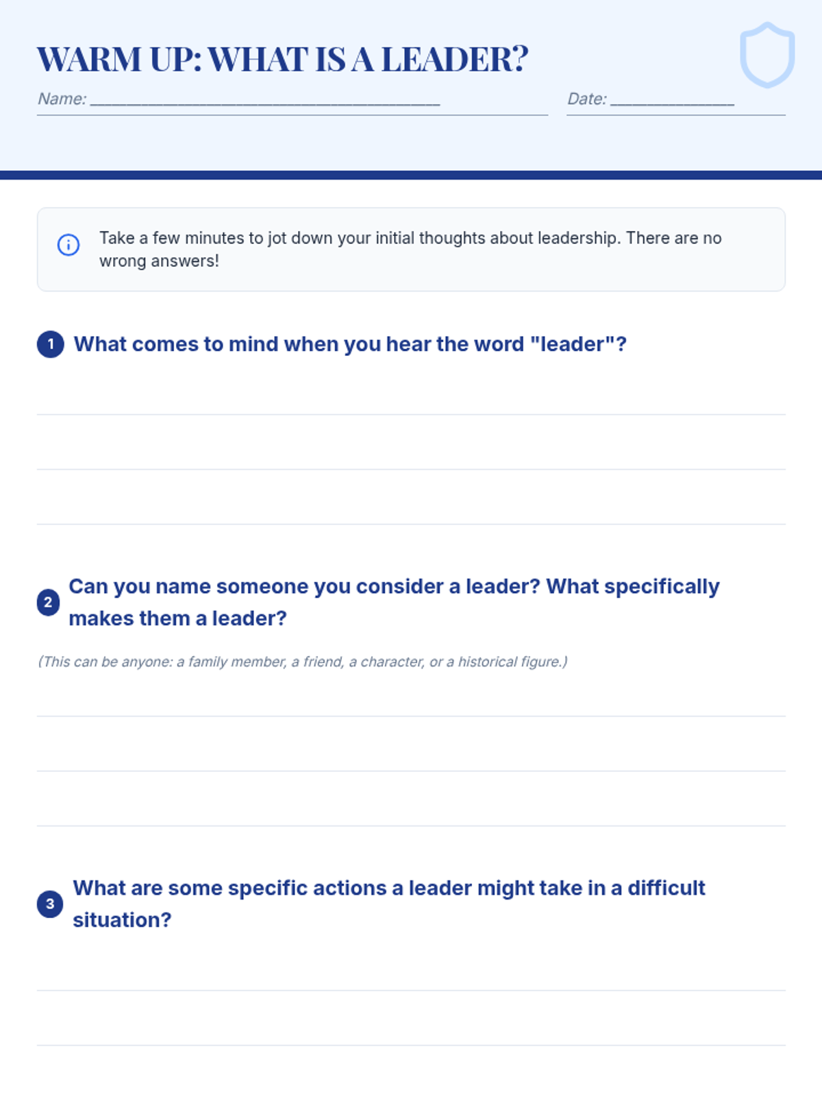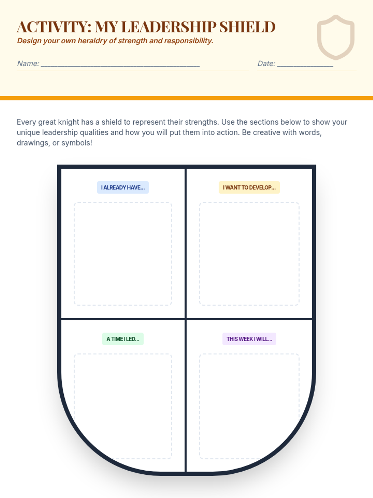 This character-building sequence guides students through discovering their leadership potential and practicing humility. It includes tailored lessons for middle school and elementary levels, using a 'shield' motif to represent personal growth and strength.