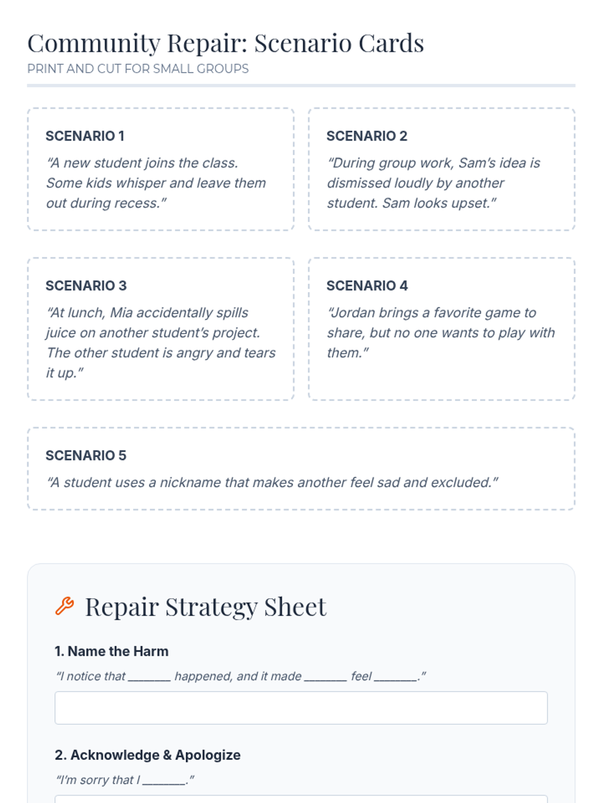 A 5-lesson sequence for 7th grade students focusing on restorative practices, the difference between intent and impact, crafting genuine apologies, and the long-term process of rebuilding trust after conflict.