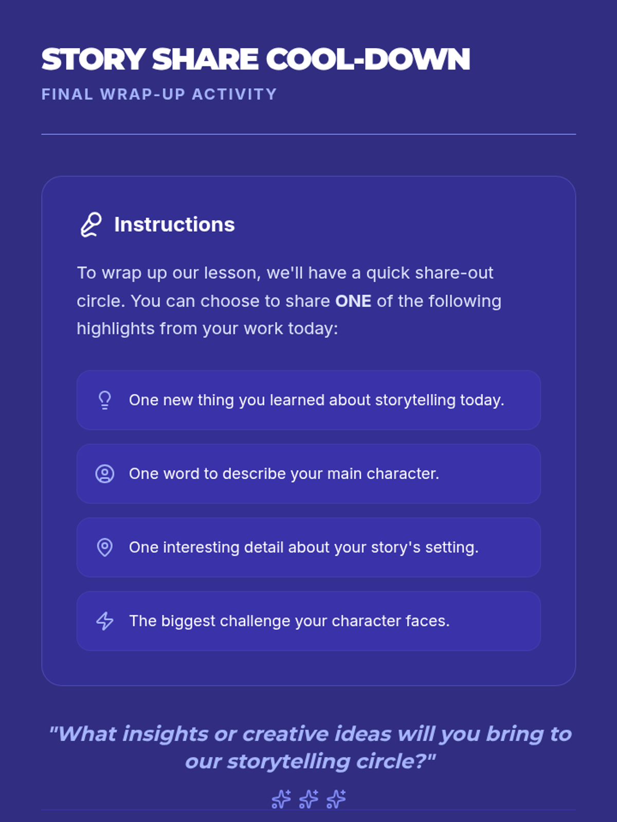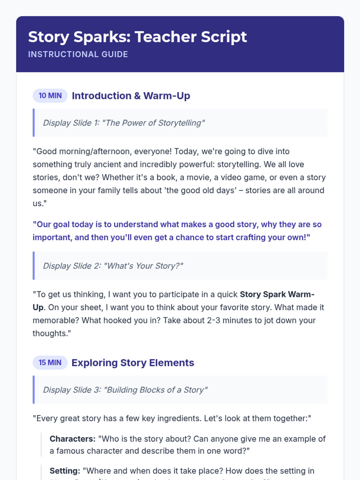 A comprehensive collection of lessons designed to empower students with the skills of storytelling and self-regulation. Through these sessions, students will learn to craft compelling narratives and master the art of self-control.