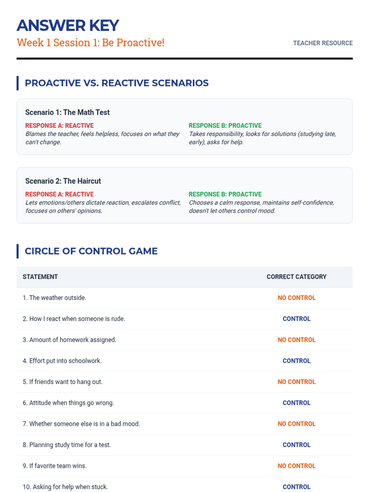 This middle school sequence focuses on building distress tolerance through Radical Acceptance. Students move from understanding the 'Cycle of Suffering' to practicing resilience in academic and social scenarios, ultimately learning to pivot from disappointment to proactive problem-solving.