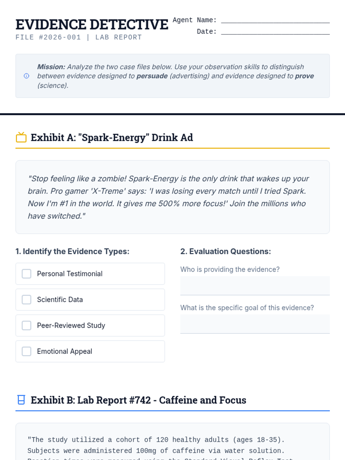 A middle school media literacy unit that turns students into 'Propaganda Detectives.' Students learn to identify persuasive techniques and logical fallacies in modern media, culminating in a creative project to redesign famous ads with 'honest' messaging.