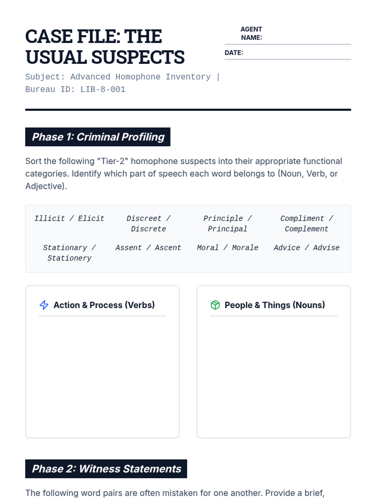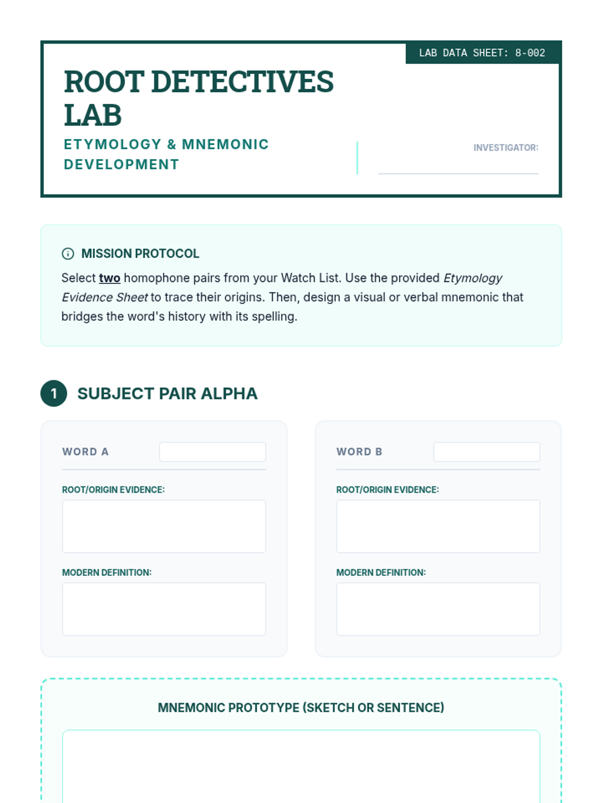 This advanced 8th-grade sequence transforms students into linguistic investigators. They will explore complex homophones (tier-2 vocabulary) through etymology, context clues, and technical editing, culminating in the creation of a professional-grade style guide.