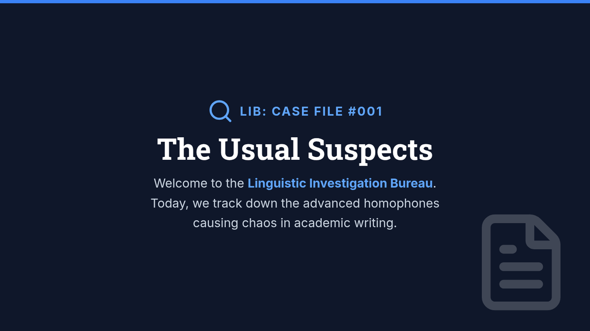 This sequence focuses on the practical application of homophone mastery through the lens of editing and professional communication. Students diagnose errors, master high-frequency triads, tackle advanced vocabulary, and apply their skills in real-world professional contexts before concluding with a peer-editing workshop.