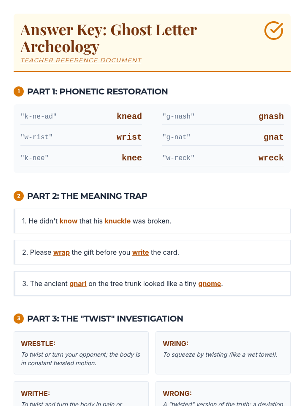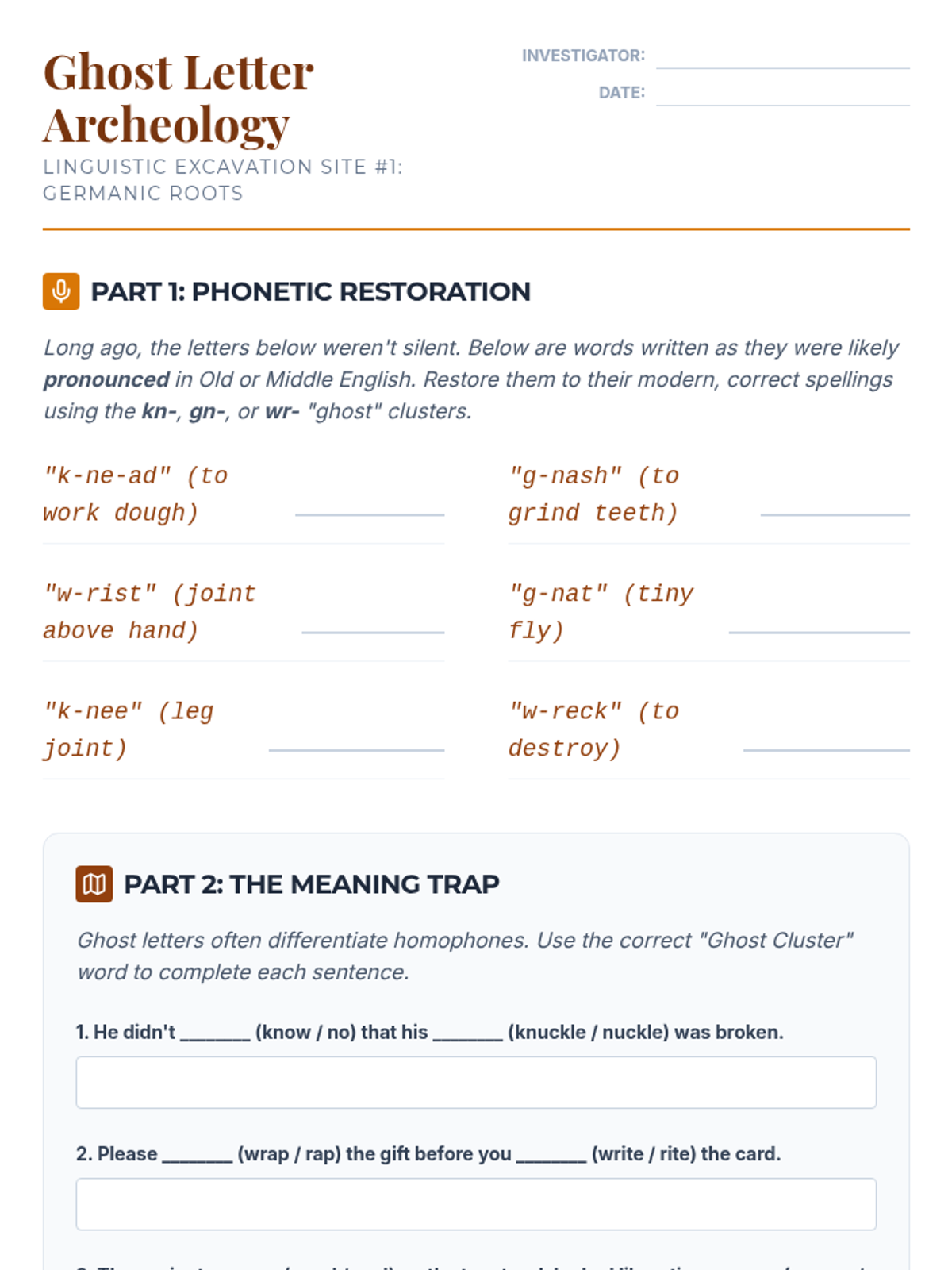 An 8th-grade spelling unit that treats orthography as a historical investigation. Students explore Germanic silent letters, French loan word patterns, Latinate suffixes, and global contributions to the English lexicon to understand why 'rule-breaking' words are spelled the way they are.
