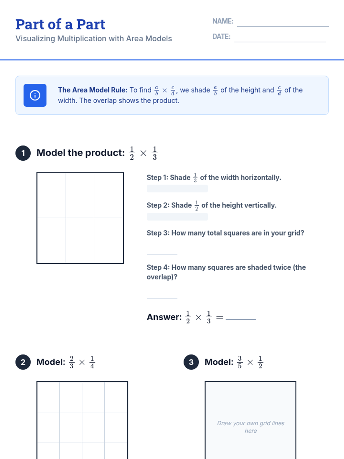 This sequence moves students from visual models to standard algorithms for multiplying and dividing fractions. Students build a deep conceptual understanding through scaling, area models, and physical manipulatives before mastering the standard algorithm and applying it to real-world scaling and design projects.