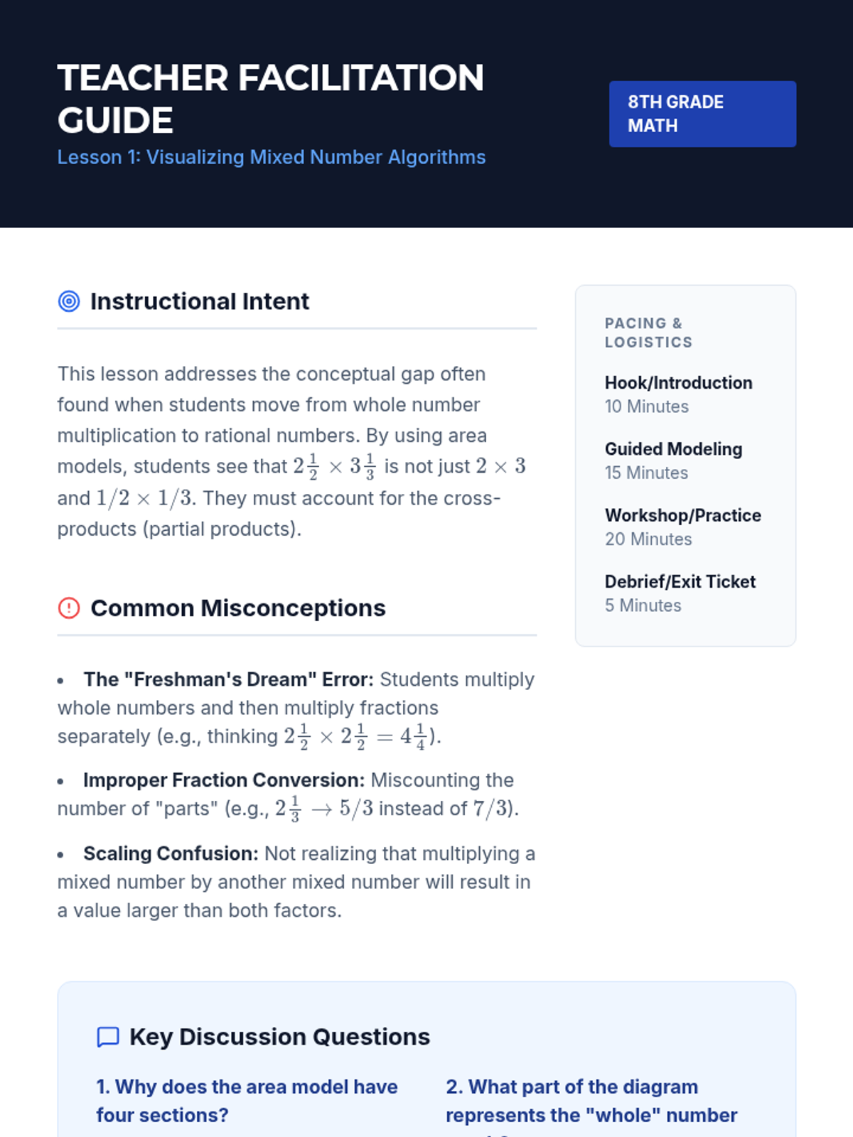 A comprehensive math review sequence focusing on foundational middle school skills including fraction conversions and decimal operations. This unit is designed to bridge conceptual understanding with procedural fluency.