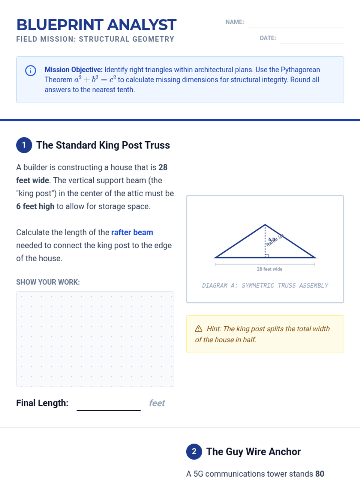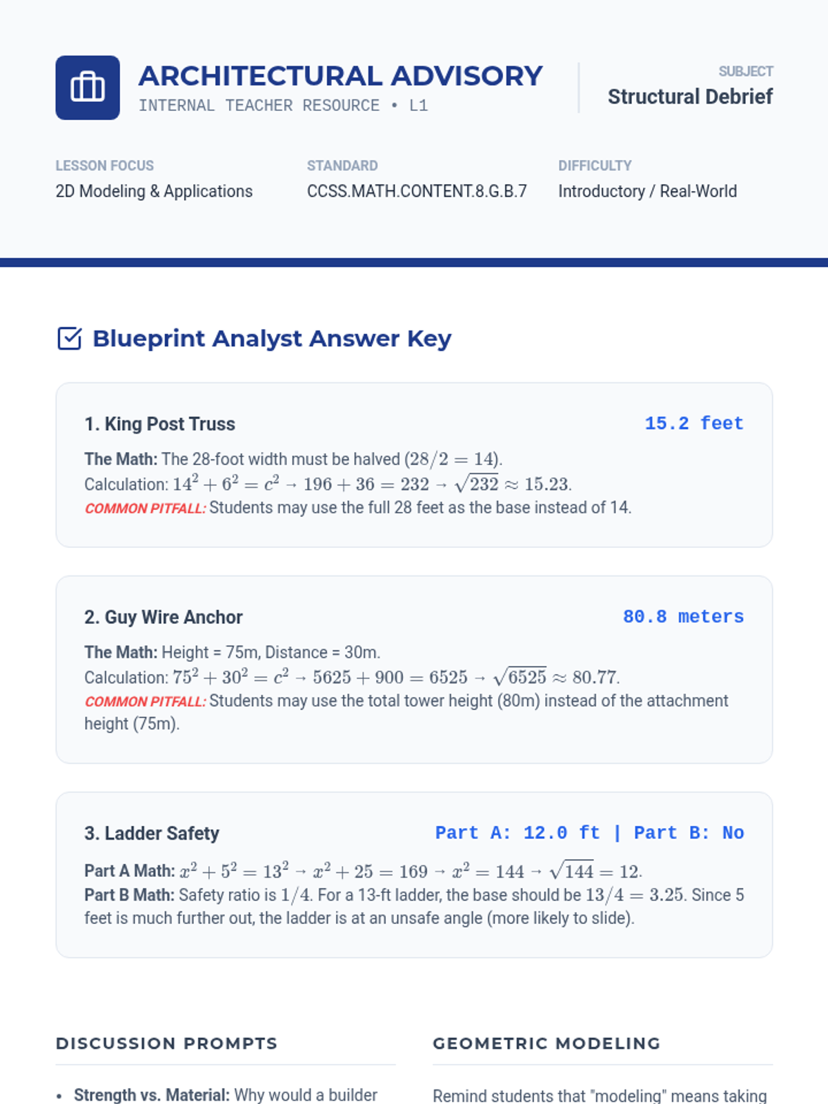 A project-based geometry unit for 8th Grade students exploring the Pythagorean Theorem through architectural modeling, 3D spatial reasoning, and engineering design challenges. Students move from analyzing real-world trusses to designing ADA-compliant ramps and calculating complex 3D distances.