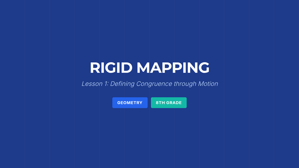 A comprehensive 8th-grade geometry unit that explores rigid transformations (translations, reflections, rotations) through inquiry-based activities and coordinate plane analysis to define congruence. Students move from physical manipulatives to algebraic rules, culminating in proving congruence through sequences of transformations.