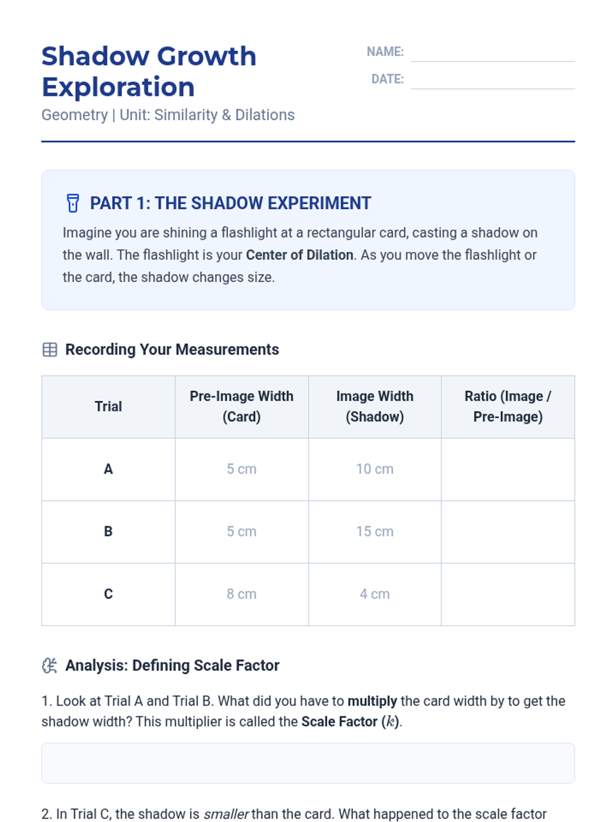 This sequence introduces dilations as non-rigid transformations, bridging the gap between congruence and similarity. Students explore scale factors, centers of dilation, and the resulting effects on perimeter and area using coordinate geometry and construction techniques.