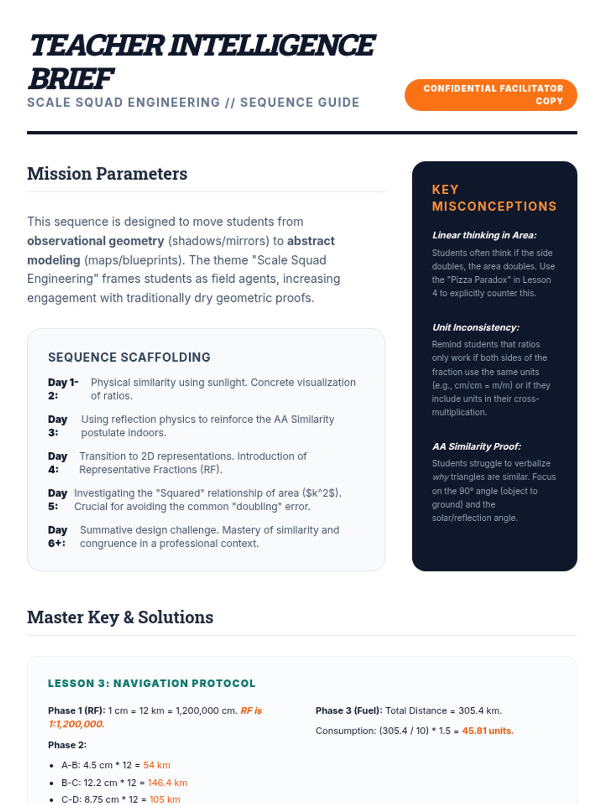 This sequence applies similarity theorems (AA, SAS, SSS) and proportional reasoning to solve complex geometric and real-world problems. Students explore triangle proportionality, geometric means in right triangles, and indirect measurement techniques, culminating in a design-focused scale modeling project.