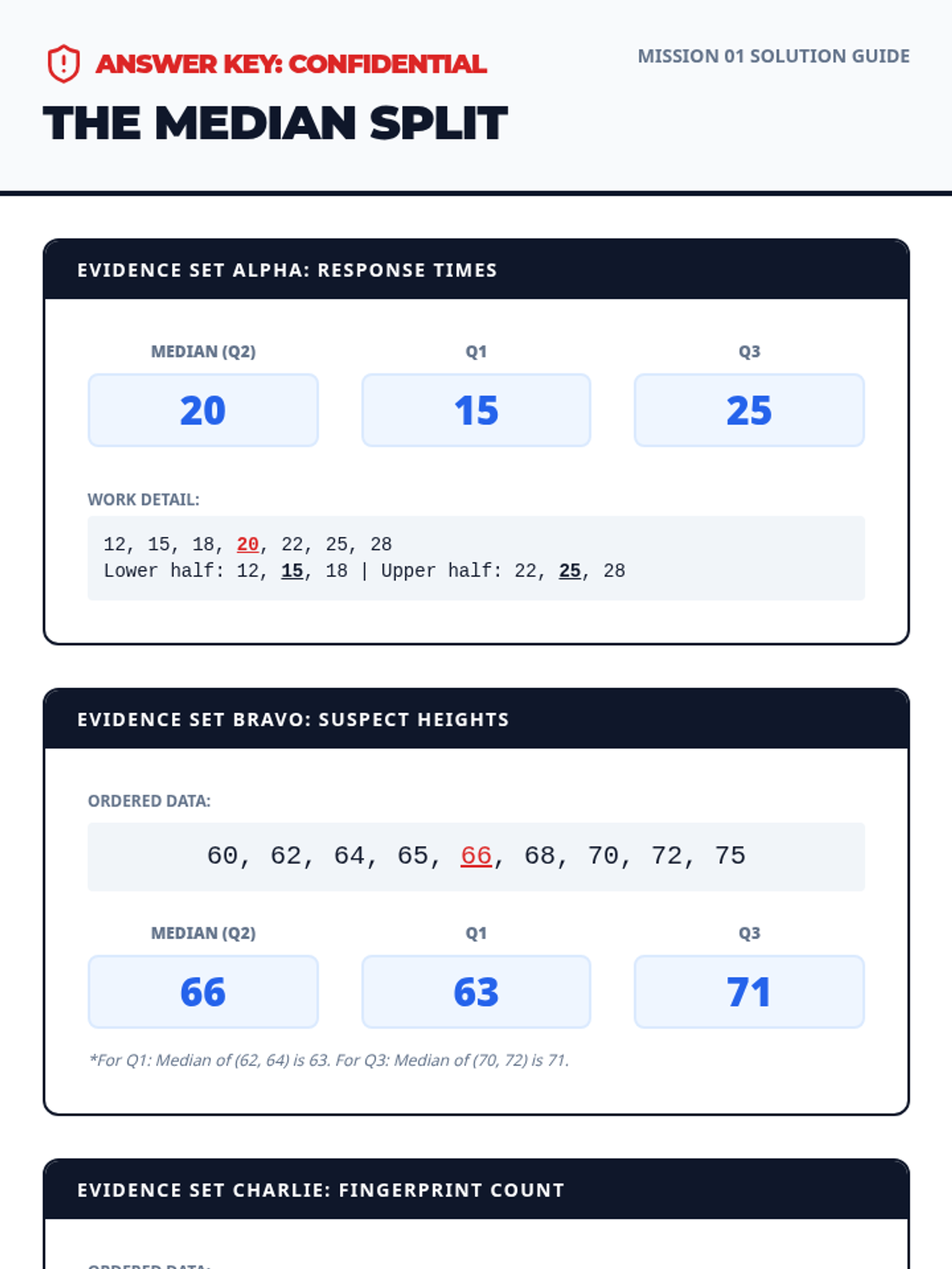 A comprehensive sequence on statistical variability focusing on quartiles, IQR, and box plots. Students move from raw data partitioning to visual representation and advanced outlier detection, culminating in the interpretation of distribution shapes and skewness.