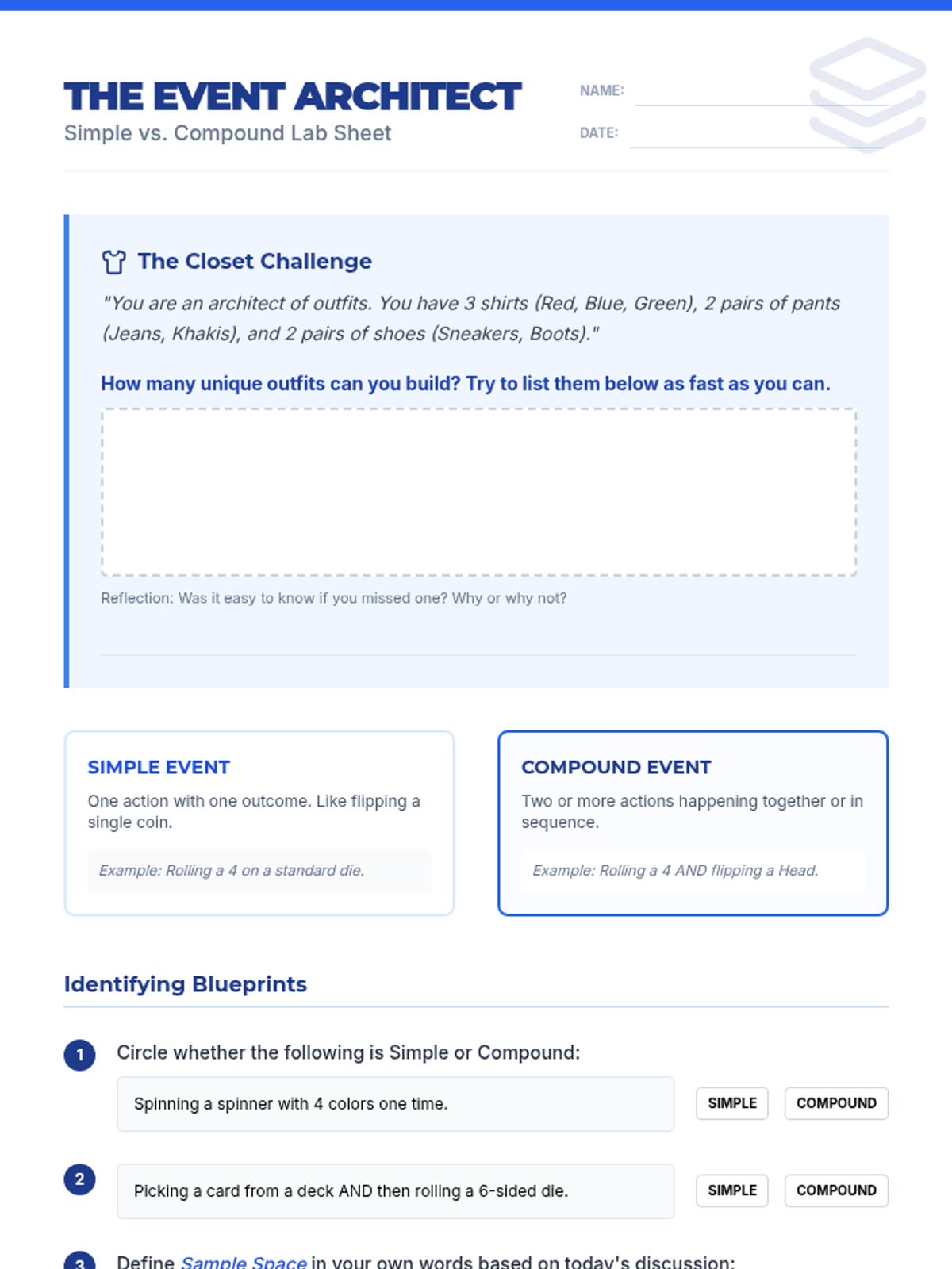 This sequence explores the differences between independent and dependent events through hands-on simulations, comparative analysis, and multi-step calculations. Students learn to adjust sample spaces and numerators based on whether items are replaced, building a strong foundation for compound probability.