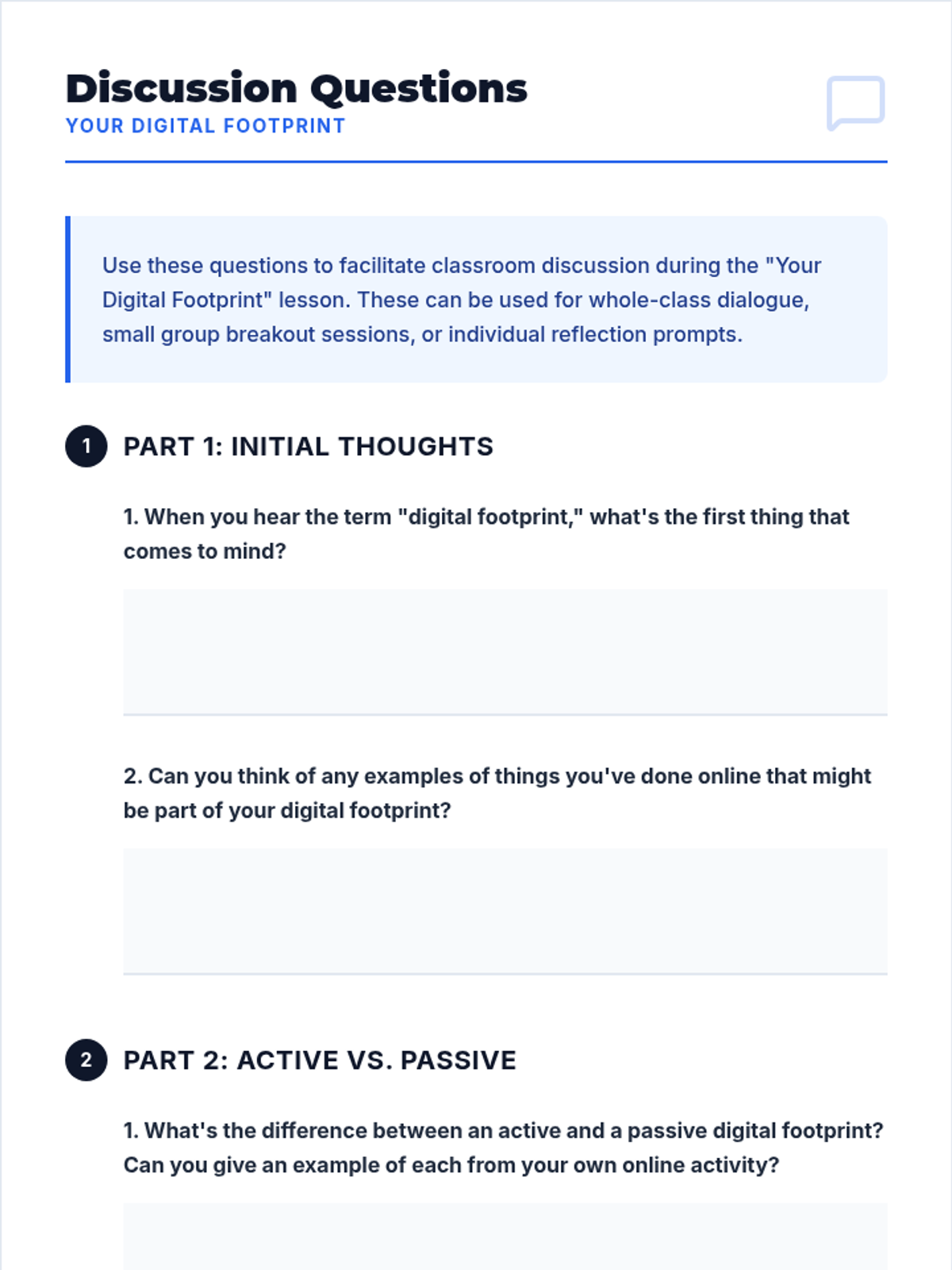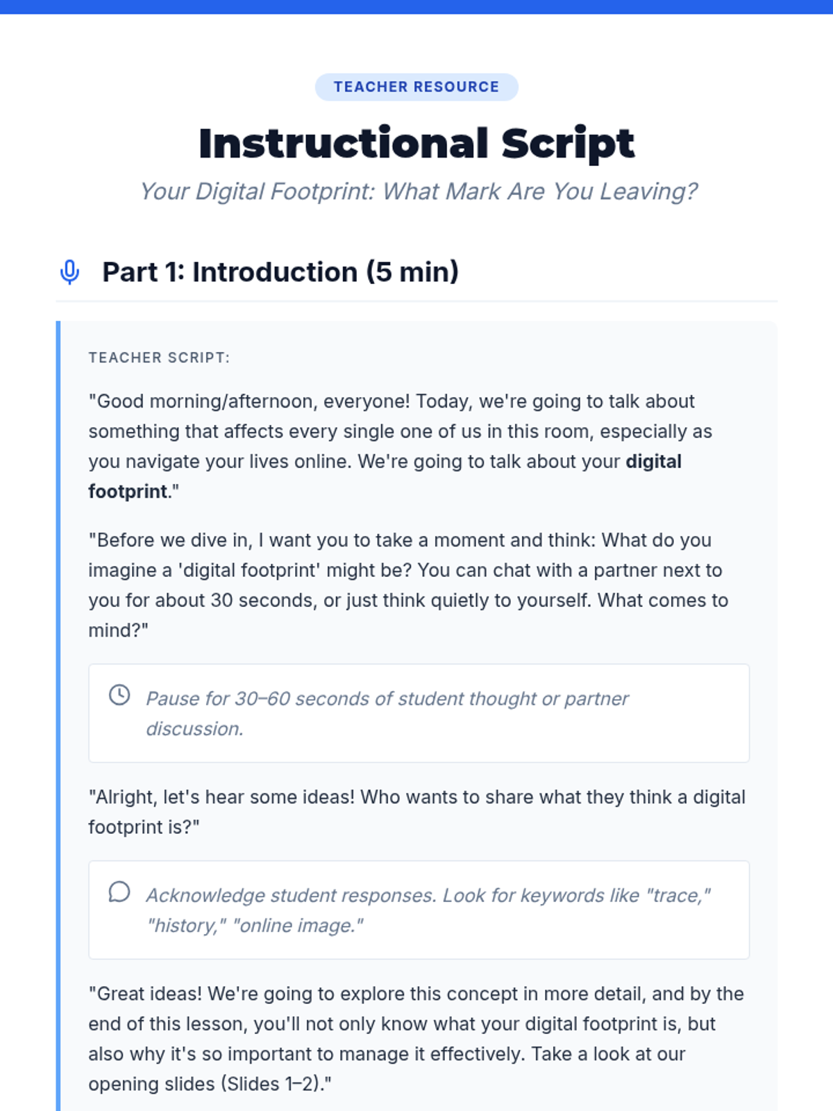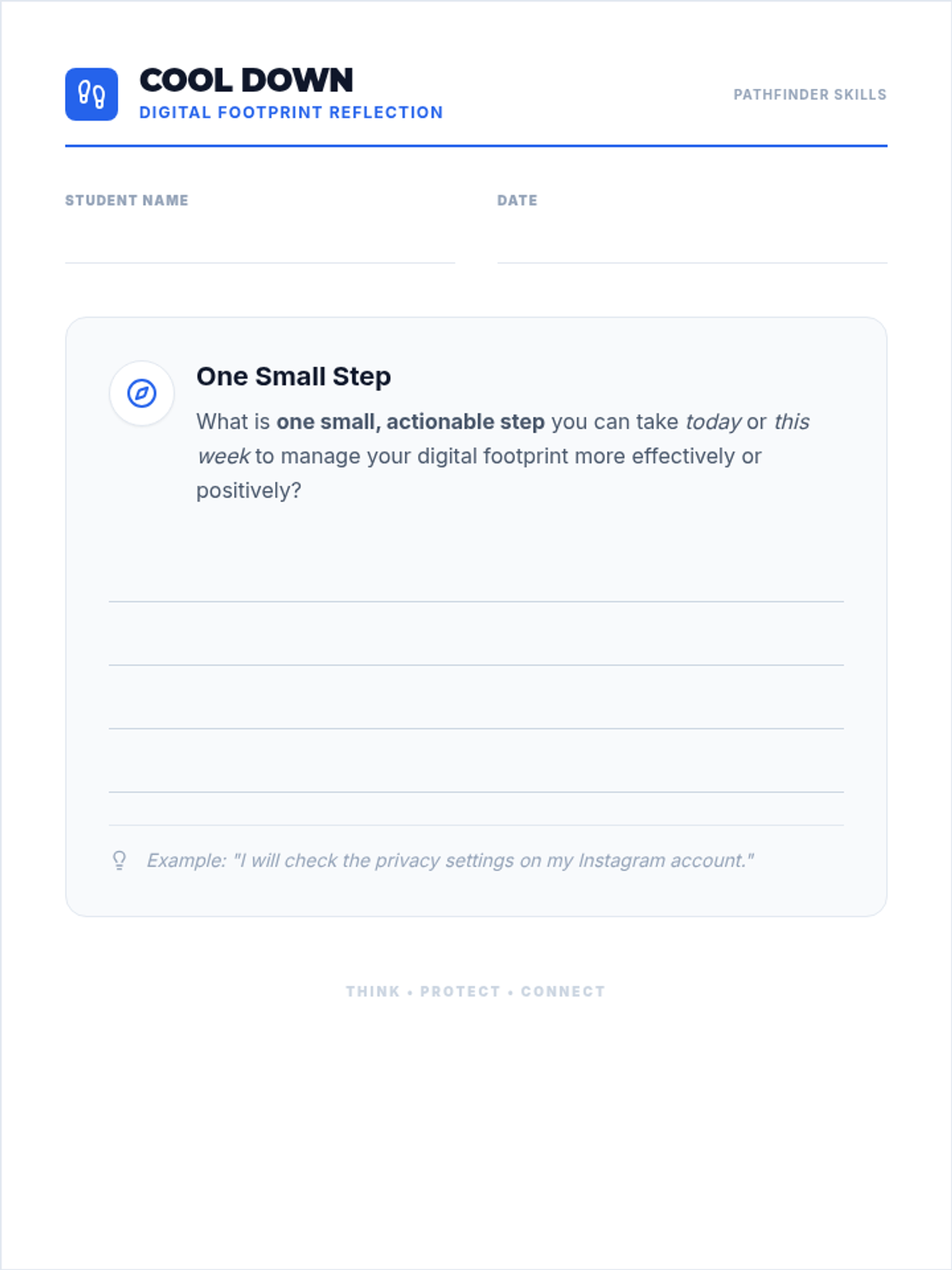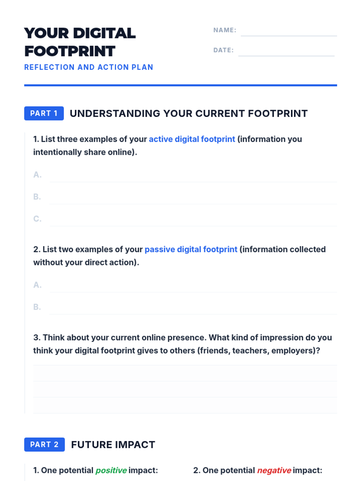 A comprehensive 9th-grade sequence on digital footprints, data privacy, cyberbullying, and professional online branding. Students move from understanding the permanence of data to actively curating a positive online narrative for future opportunities.