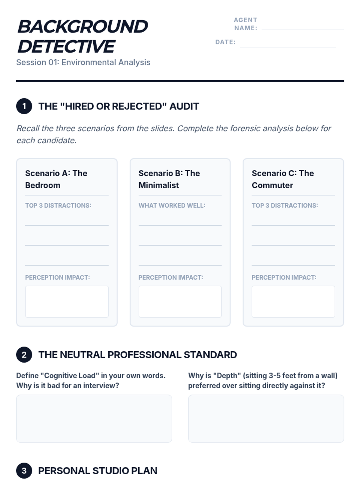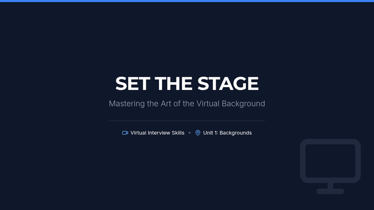 A project-based sequence for 7th graders to master the art of virtual interview backgrounds. Students explore visual rhetoric, set design, lighting, and digital tools to curate professional spaces that communicate their personal brand effectively.
